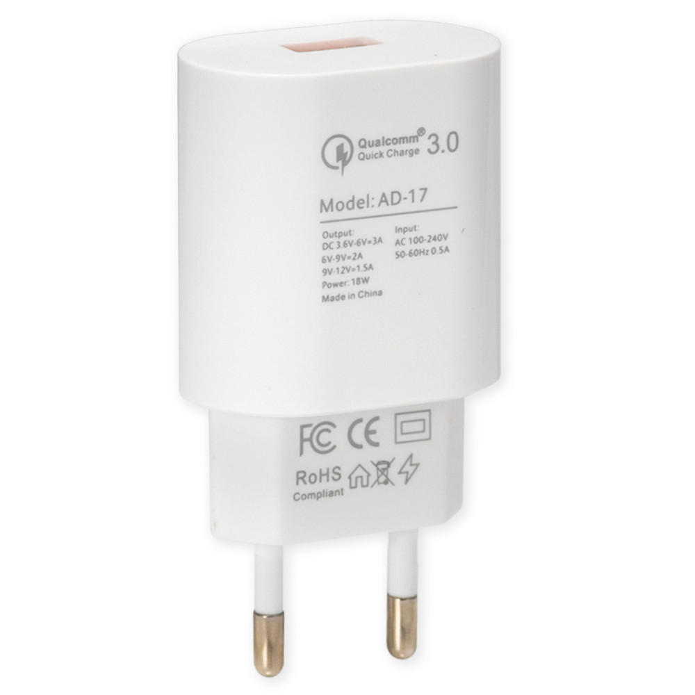Veron AD-17 - это высококачественное сетевое зарядное устройство для быстрой зарядки смартфонов и другой электроники. Устройство поддерживает технологию Qualcomm Quick Charge 3.0 - зарядка до 4 раз быстрее. Встроенная схема защищает зарядное устройство и Ваши устройства от перенапряжения, перегрева, перегрузки по току и короткого замыкания от повреждений и обеспечивает более безопасную зарядку в ночное время.