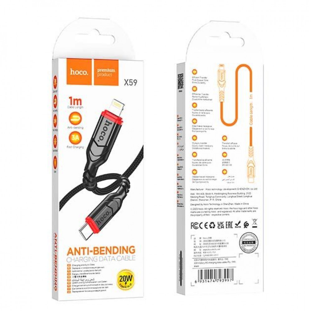Кабель заряджання HOCO X59 (PD20W/3А) (1M) для Type-C to Apple Lightning для iOS пристроїв iPhone/iPad/iPod Чорний