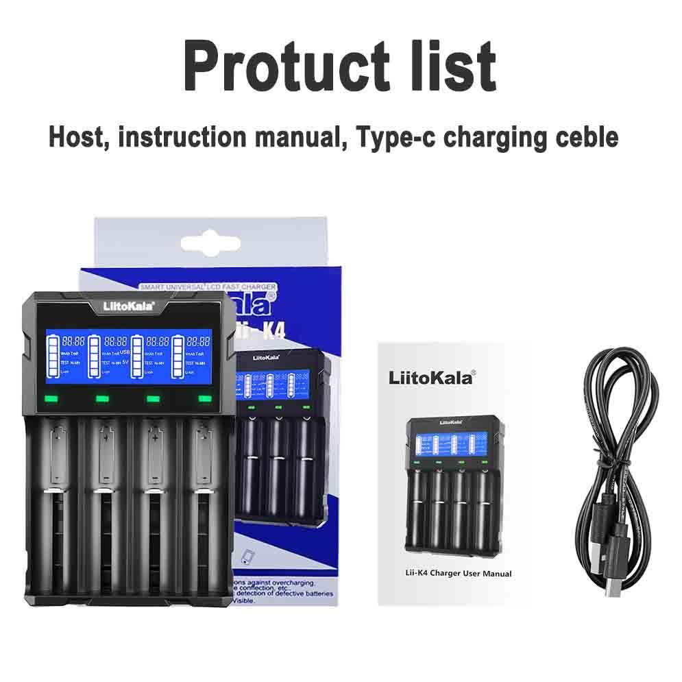 Зарядное устройство LiitoKala Lii-K4, Power Bank, 18650/ 26650/ 21700/ 26700/ AA