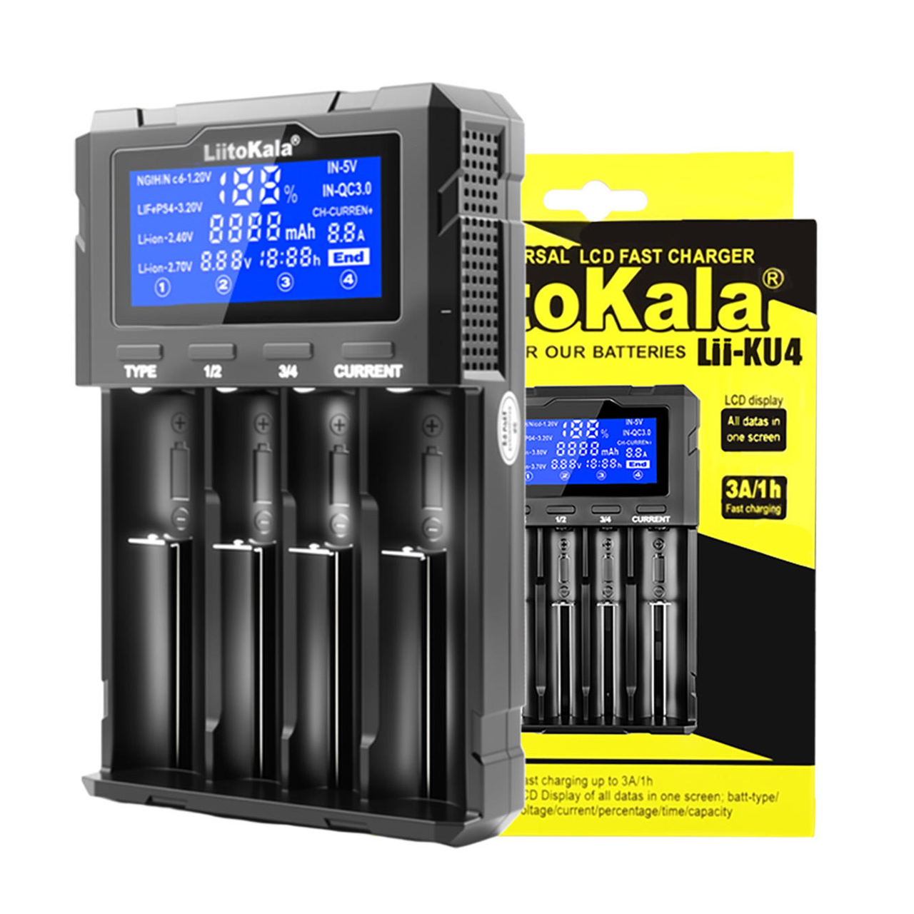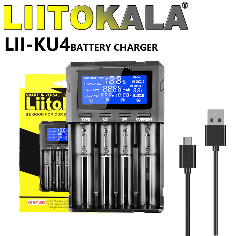 Зарядное устройство LiitoKala Lii-KU4, 18650/ 26650/ 21700/ 32650/ 20700/ 21700/ 16340