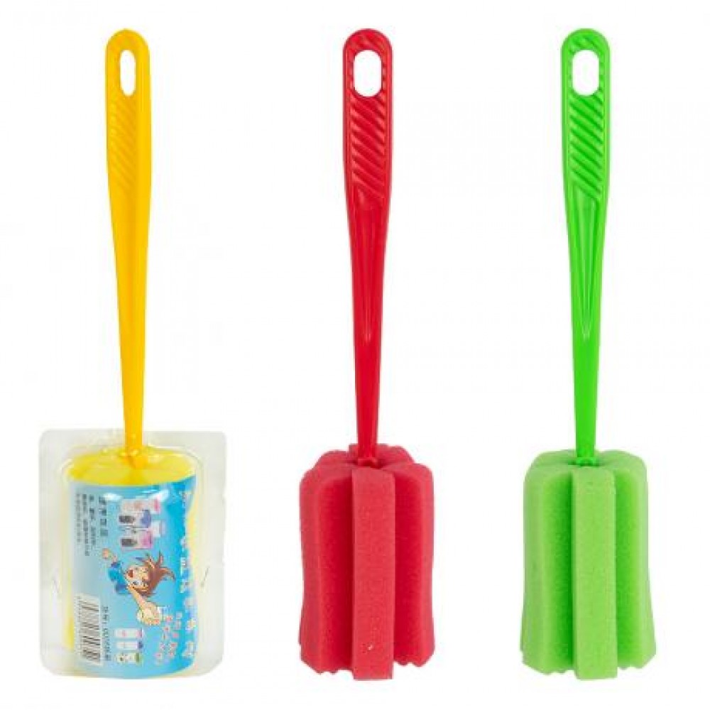 Губка для миття пляшок 0035 призначена для зручного та ефективного очищення пляшок, банок, ваз, термосів та іншого посуду з вузькою горловиною. Загальна довжина виробу становить 24 см, що дозволяє легко діставати до дна ємностей без контакту рук з водою. Розмір робочої частини — 7,5×5,5 см, губка розміщена у пластиковому корпусі, що підвищує зносостійкість і спрощує догляд. Довга пластикова ручка довжиною 16 см забезпечує зручний хват і комфорт у користуванні. Виріб підходить для регулярного використання на кухні та в побуті. Практичний товар для догляду за посудом і вигідний варіант для оптового продажу.