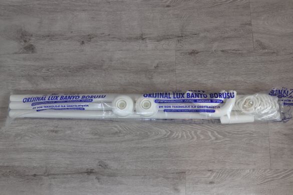 Карниз для ванной угловой Oz Best, выполнен из трех труб длинной по 80 см каждая, которые можно соединить в форме буквы "П" или буквы "Г". Крепится путем сверления стен, также подвешивается угол к потолку. Выполнен из метала, в комплекте 12 колец.