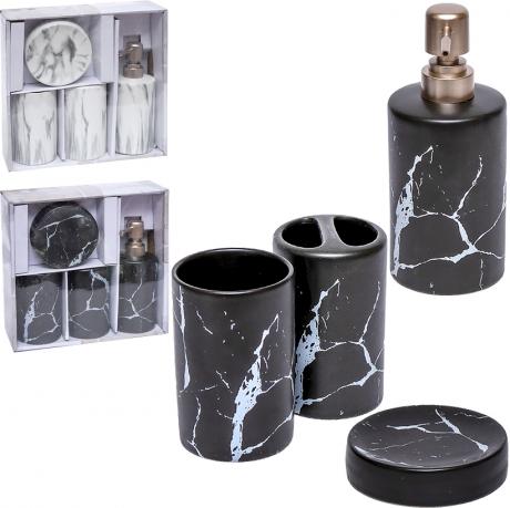 Сучасний та зручний елемент у ванній. Все необхідне для комфортного перебування у ванній кімнаті входить у відмінний набір. Окрім своєї практичності, він вражає стильним дизайном. Матеріал кераміки. У комплекті 4 предмети: