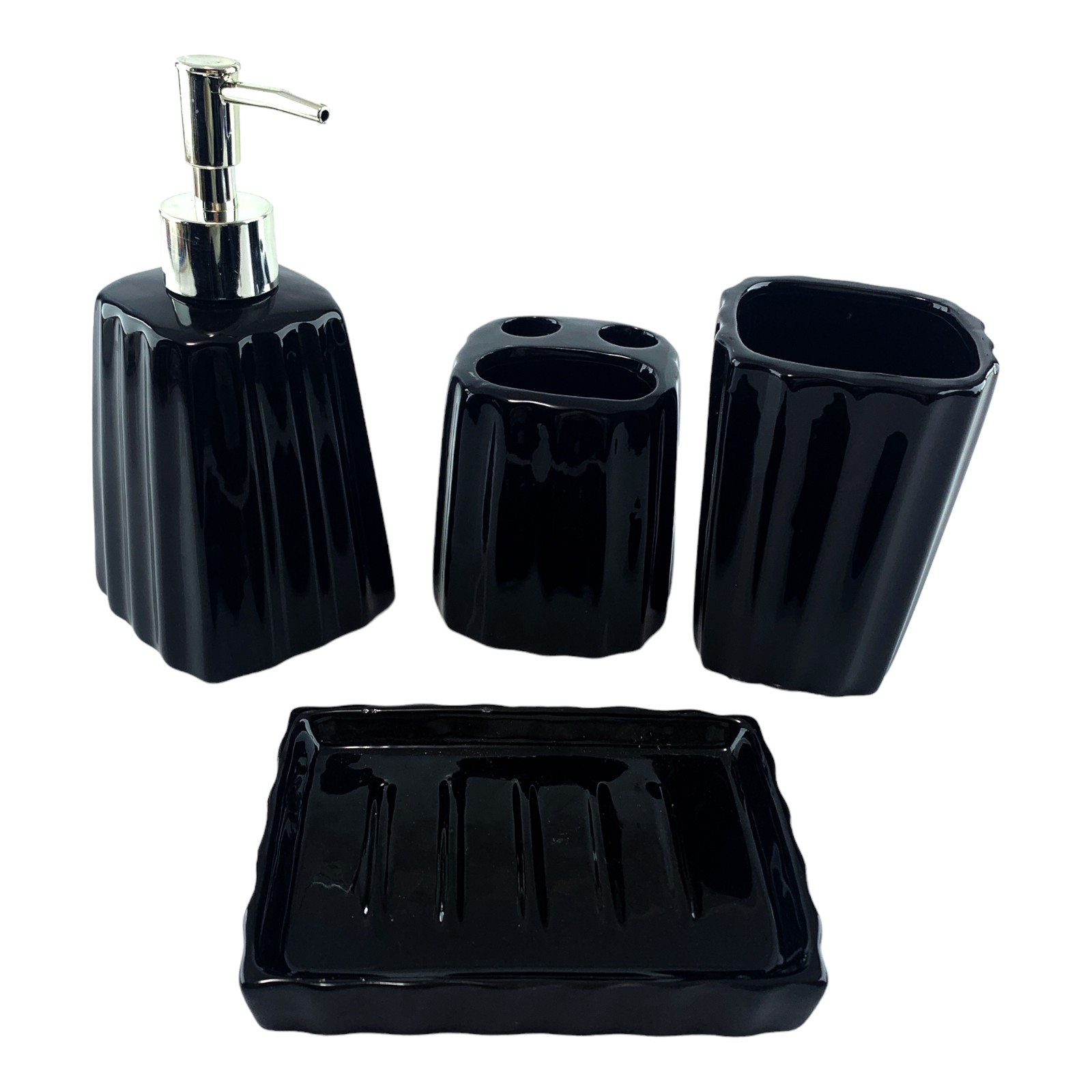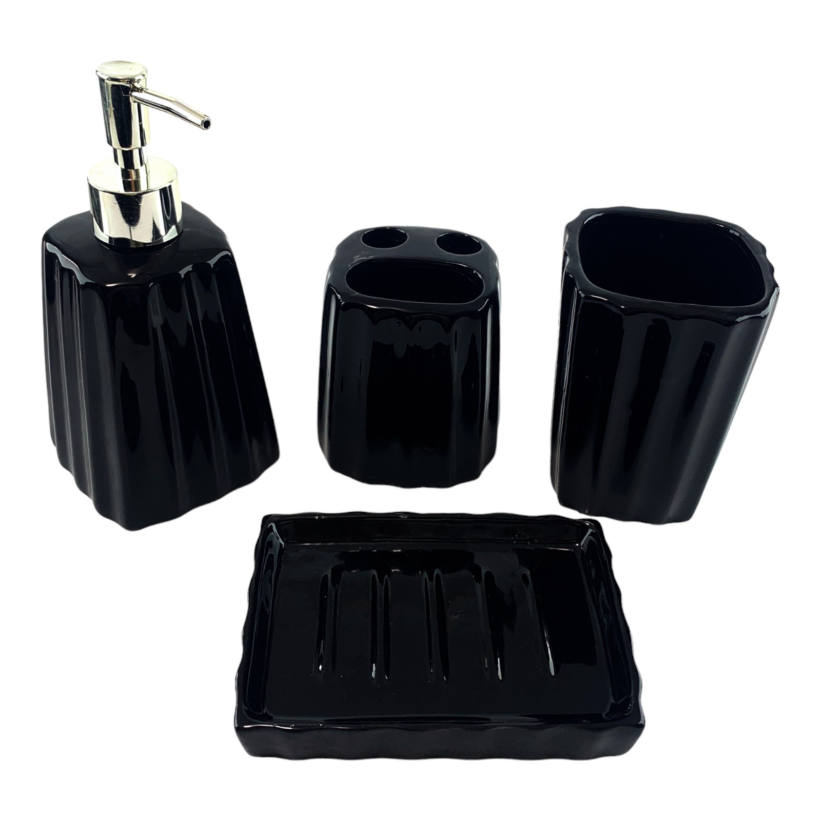 Керамический набор для ванной в черном цвете - это идеальное решение для придания вашей ванной комнате стиля и функциональности.