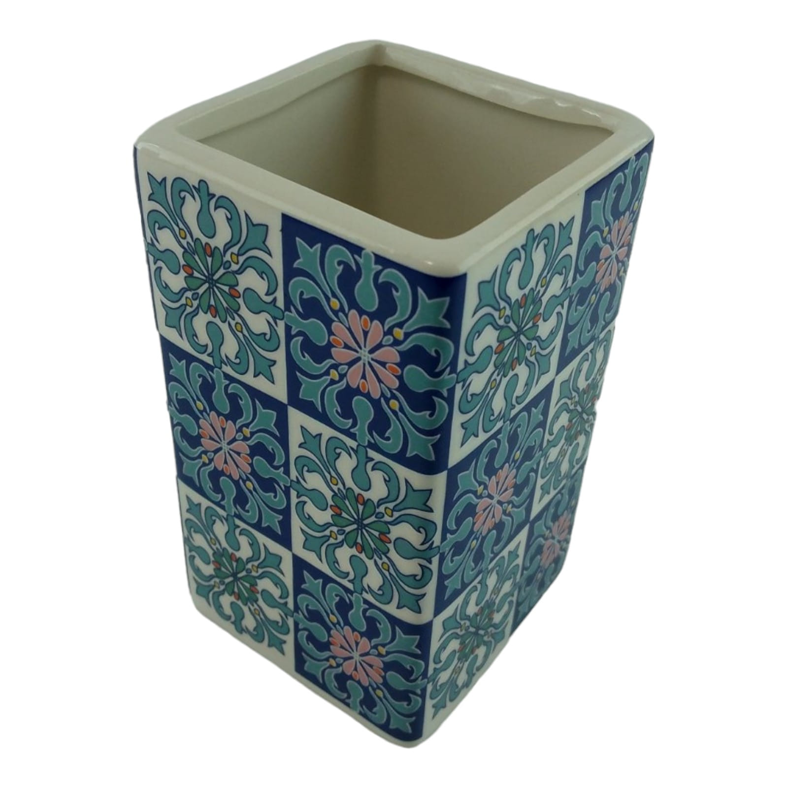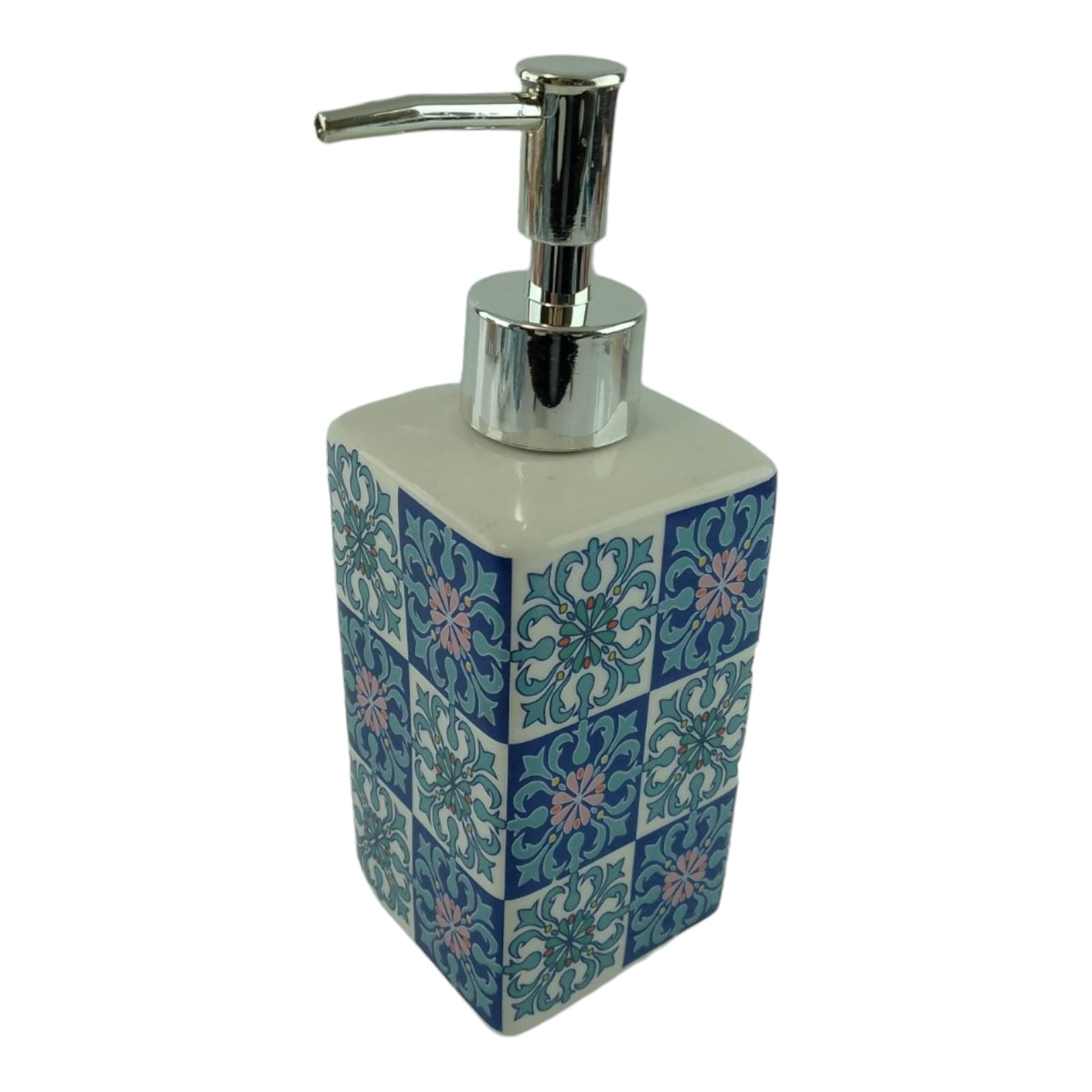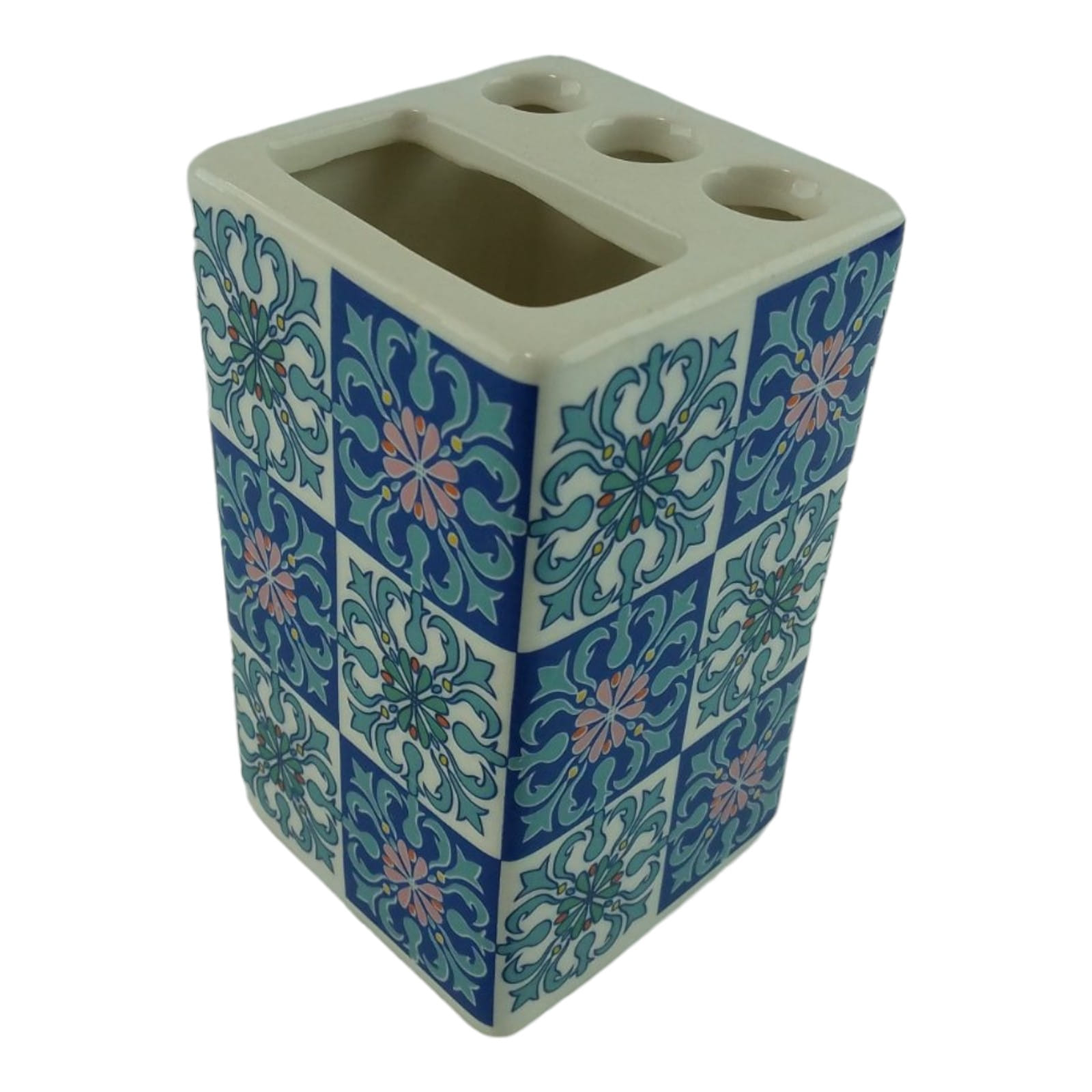 С очаровательным набором аксессуаров для ванной все предметы будут на своих местах. В керамический набор входит-дозатор для жидкого мыла, стакан ,органайзер для зубных щеток, мыльница.