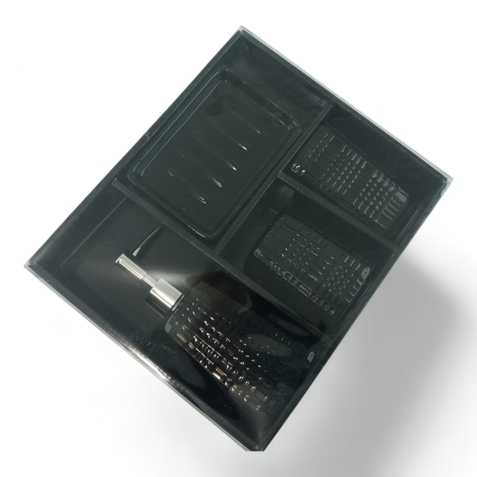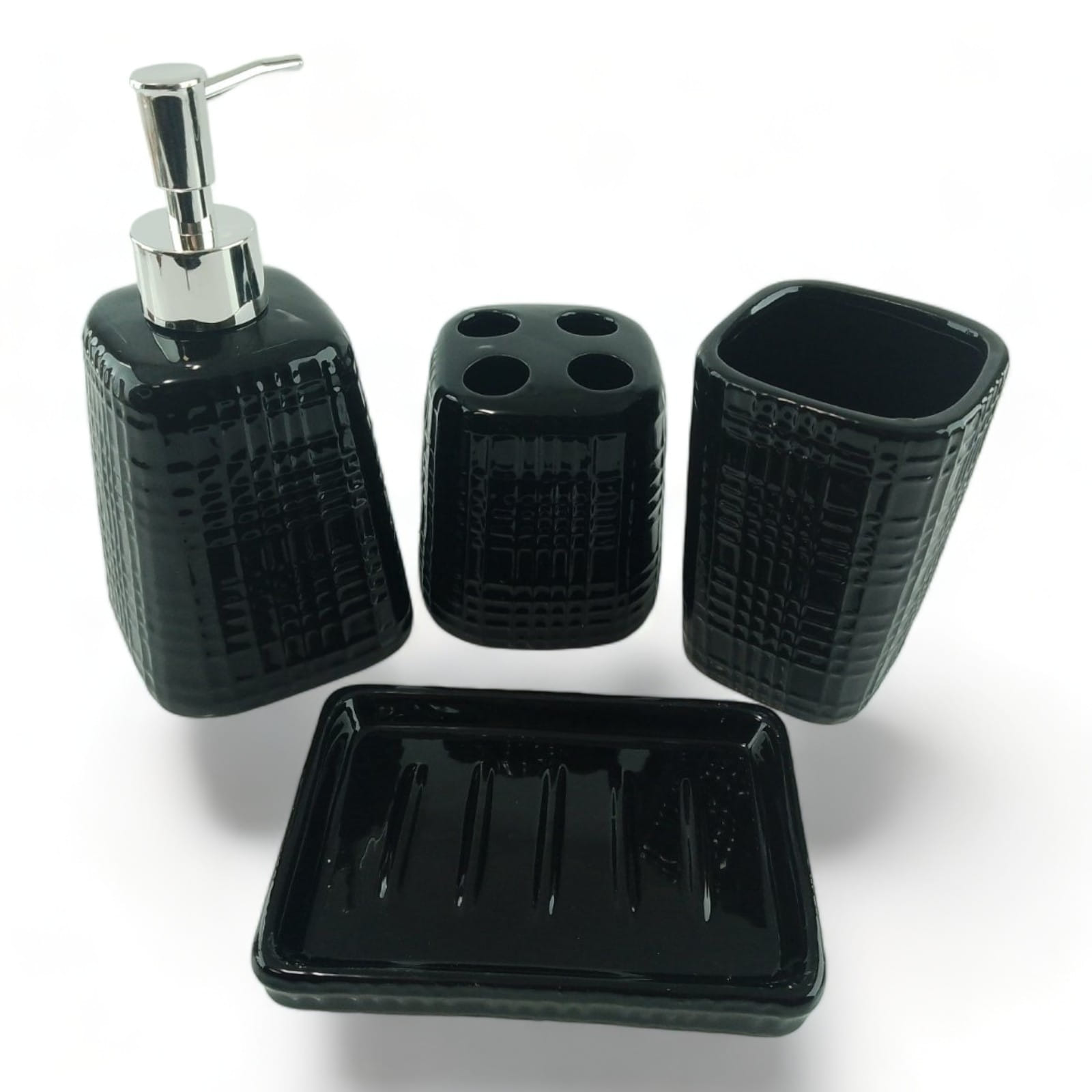 С очаровательным набором аксессуаров для ванной все предметы будут на своих местах. В керамический набор входит-дозатор для жидкого мыла, стакан ,органайзер для зубных щеток, мыльница.