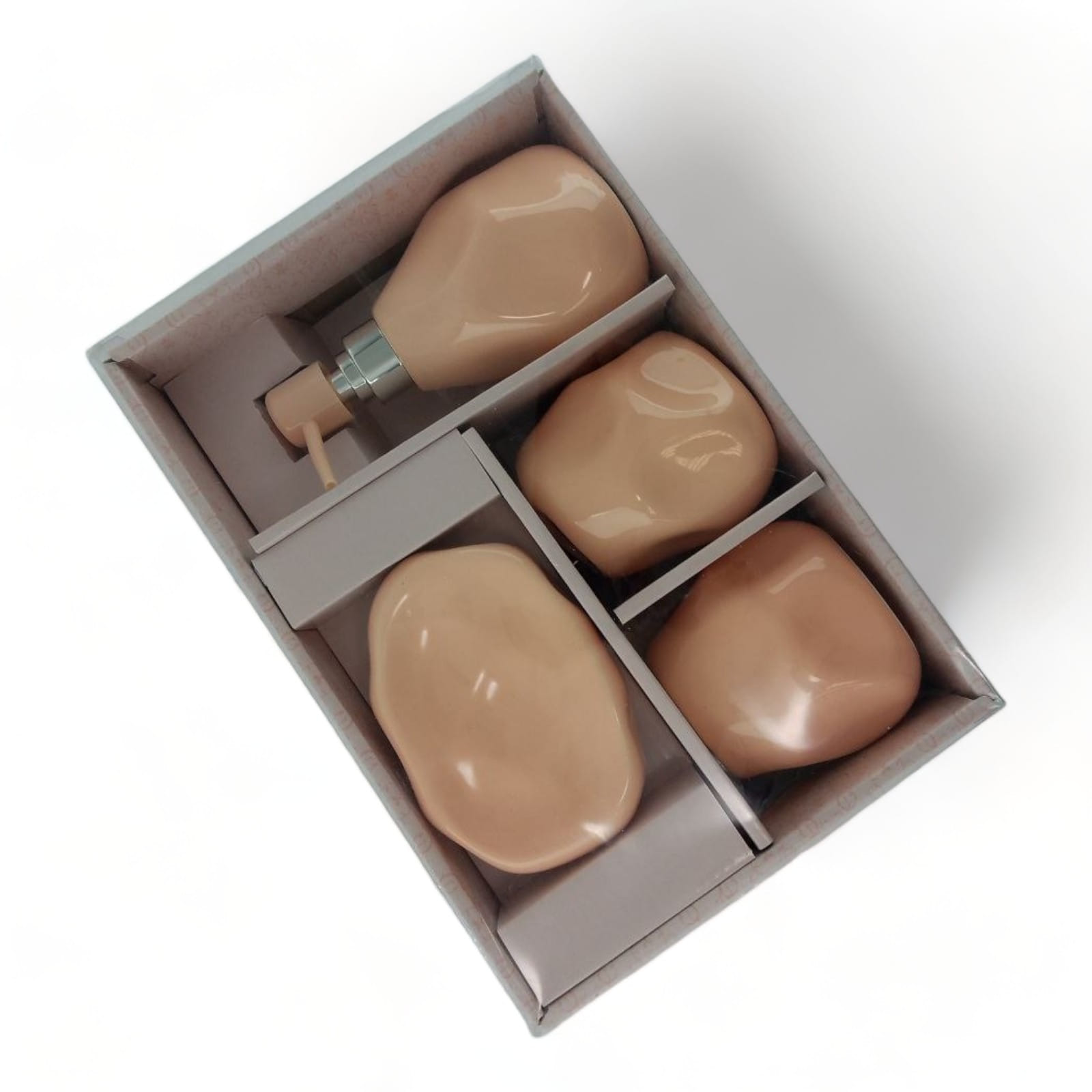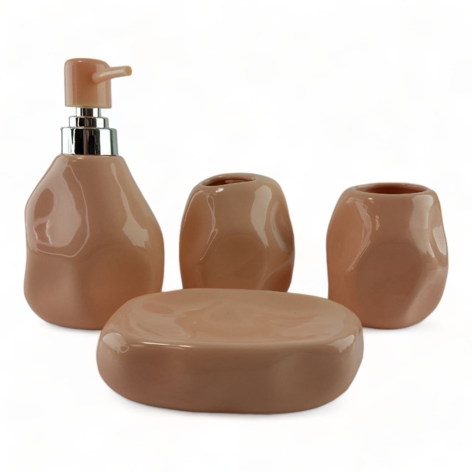 Создайте гармоничную и стильную атмосферу в ванной комнате с набором аксессуаров в нежном персиковом цвете. Элегантный дизайн и прочный керамический материал делают этот комплект не только красивым, но и долговечным.