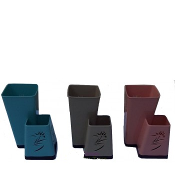 Пластиковая подставка может быть использована для хранения столовых приборов, аксессуаров в ванной комнате, канцелярских предметов. Органайзер имеет два отделения, выполнен в различных расцветках.