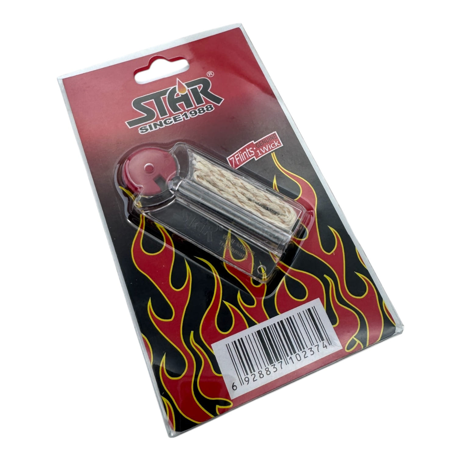 Этот набор для зажигалок от известного китайского бренда STAR — идеальный выбор для тех, кто хочет поддерживать свою зажигалку в рабочем состоянии. Бренд STAR с 1988 года славится своей надёжностью и качеством продукции, специализируясь на производстве аксессуаров для зажигалок и другой курительной атрибутики. В набор входит 7 запасных кремней и один керосиновый фитиль, что обеспечивает долгий срок службы вашего устройства для поджигания.