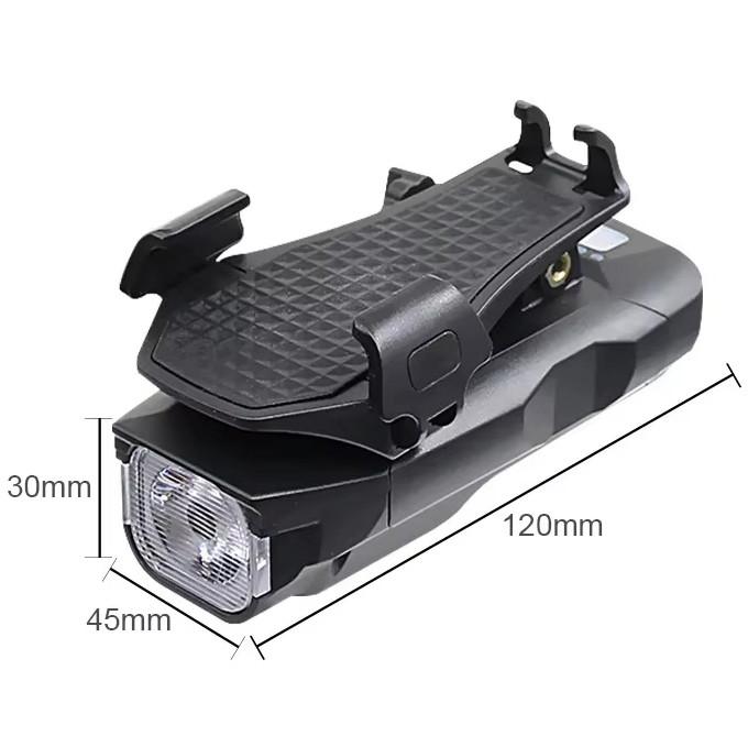 Велофара BG-1951/HJ-068, 500LM, Power Bank, Li-Ion аккумулятор, ЗУ Type-C, звонок, крепление под телефон