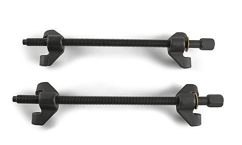 Универсальный съемник пружин двухзахватный. Болт с трапециедальной резьбой приводится в действие головкой размером 21мм,воротком ½ дюйма или пневмо-гайковертом. Стяжки имеют длину 355 мм. Подходят практически для всех видов автомобилей.