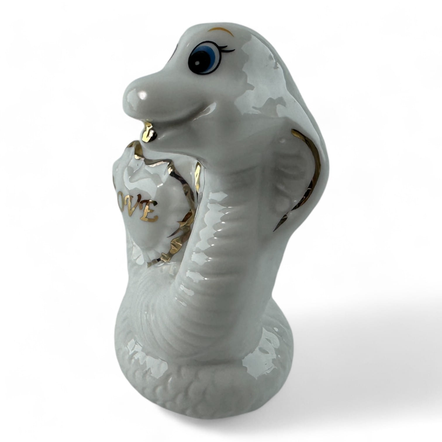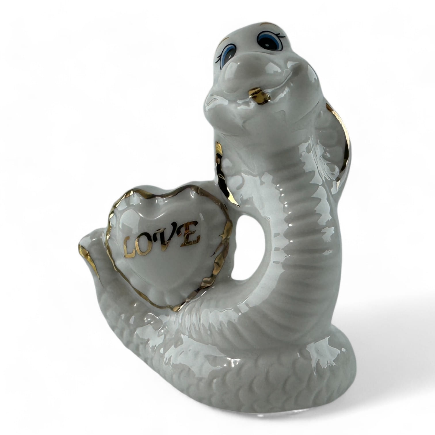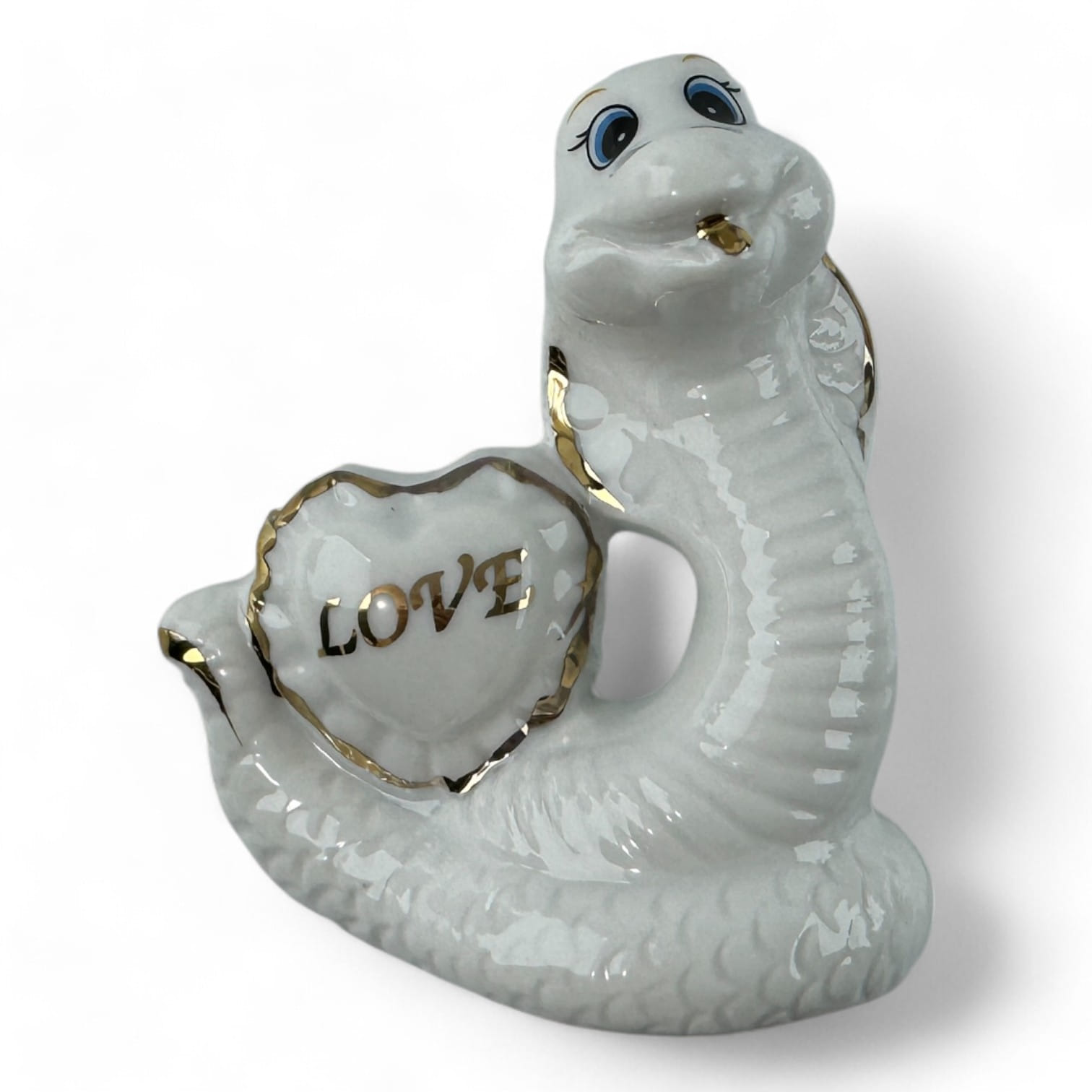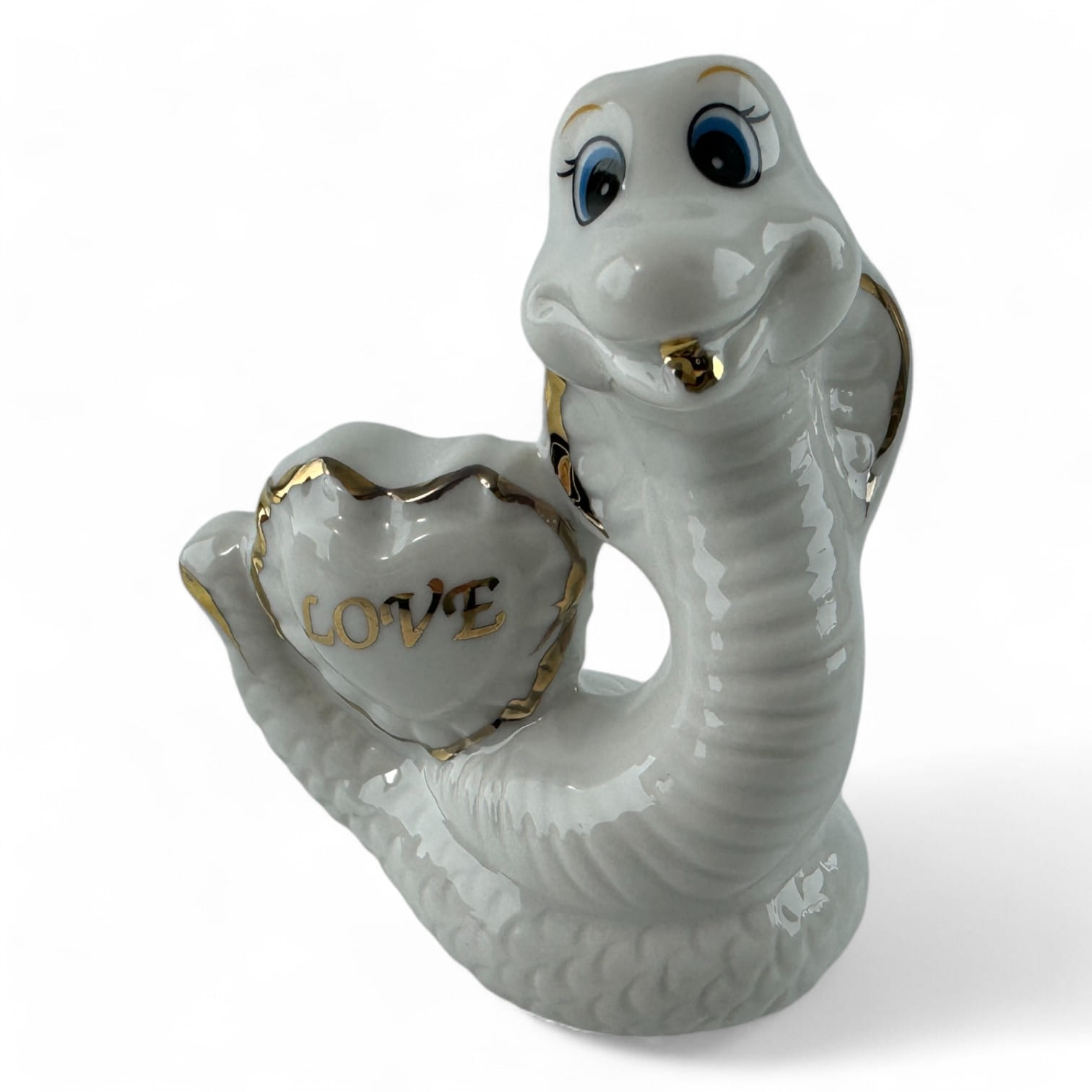 Эта изысканная фигурка кобры станет ярким акцентом в любом интерьере. Кобра выполнена из гладкого фарфора с блестящими золотыми элементами, а нежное сердечко с надписью “LOVE” добавляет трогательный штрих.