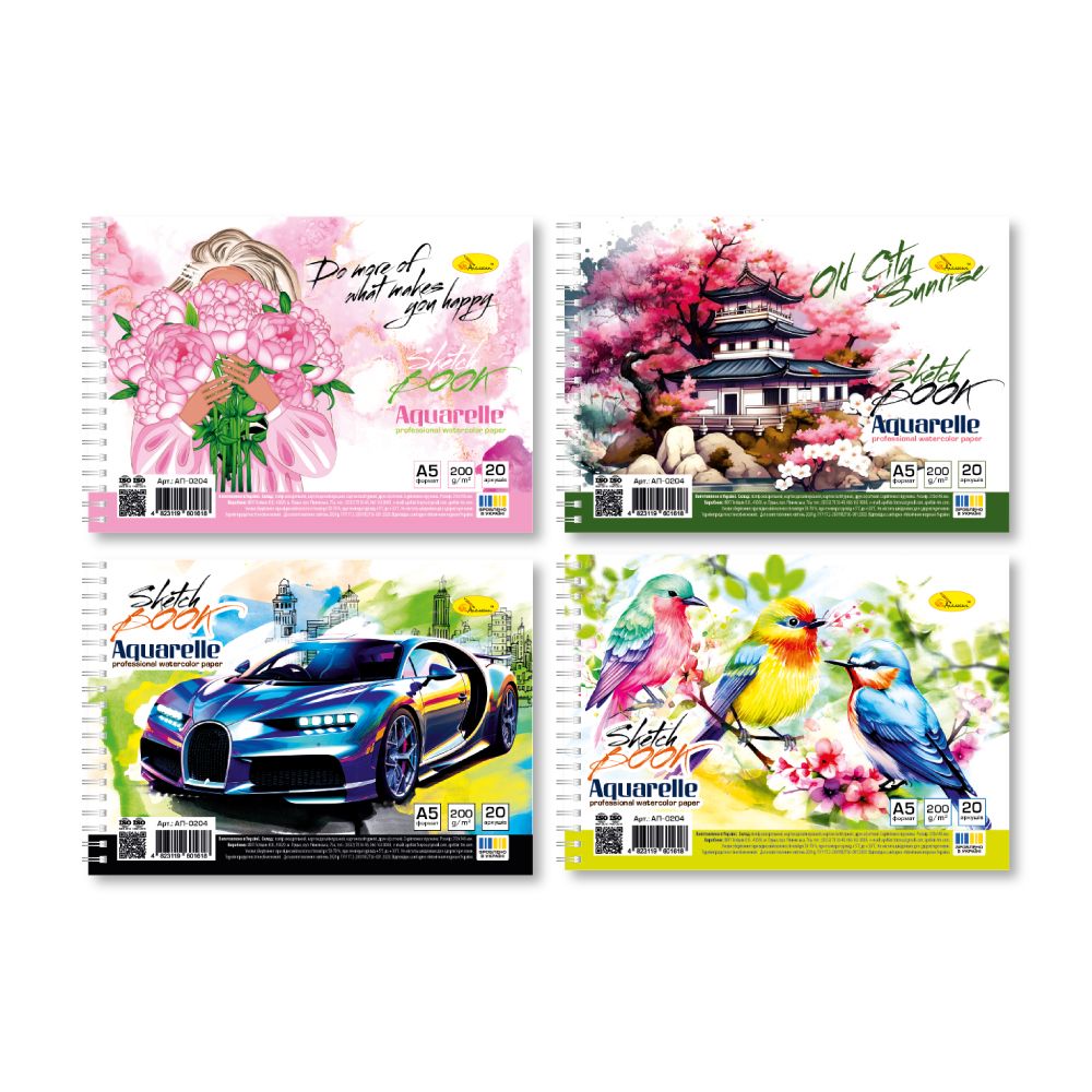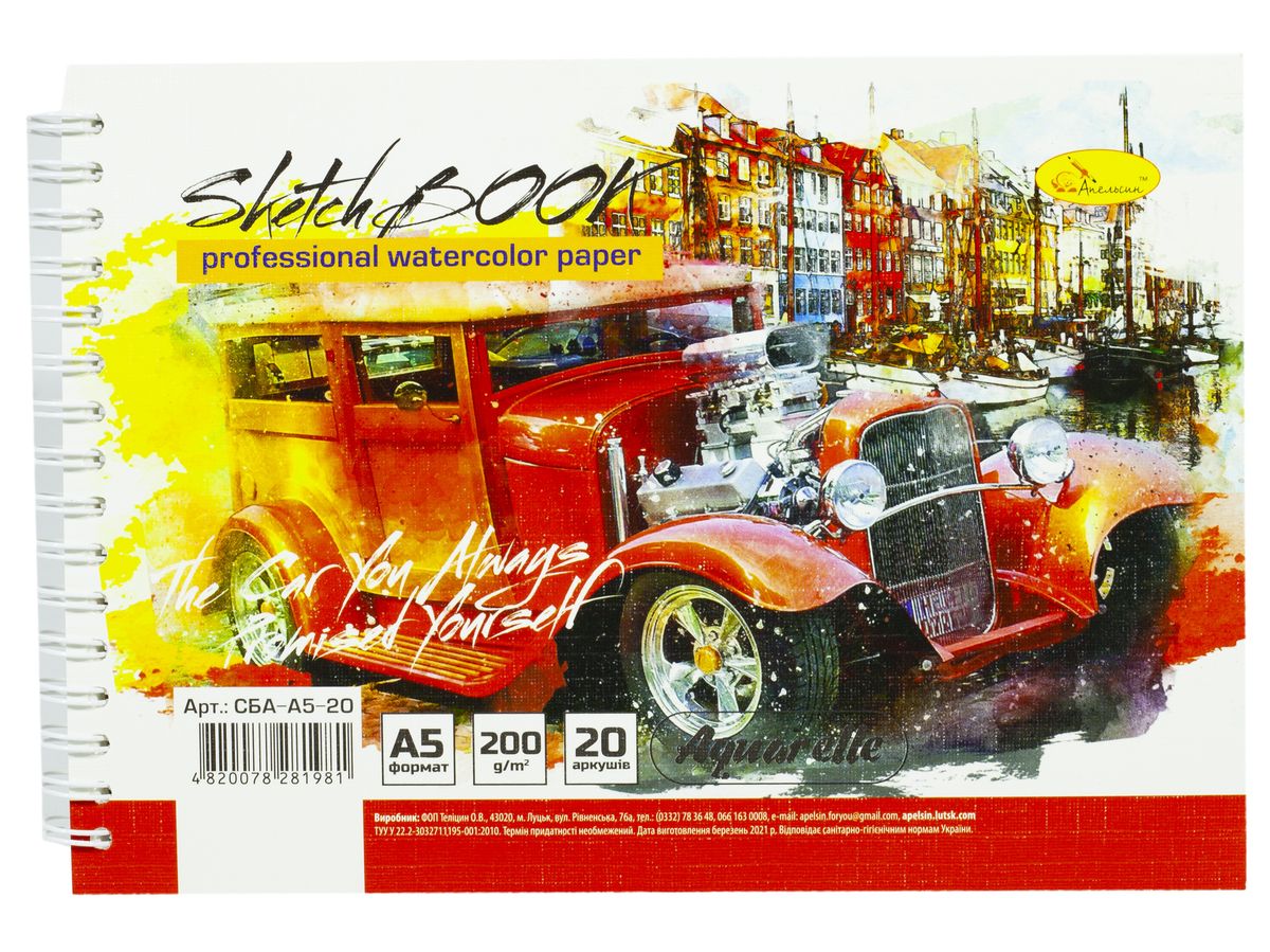 Скетч-бук "Акварельный" 20л А5 акварельная бумага 200г/м² Разноцветный Unison (СБА-А5-20/АП-0204)