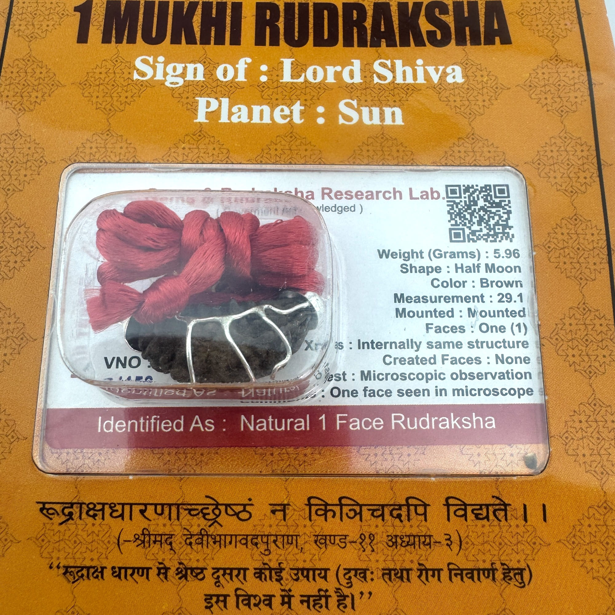 1 Мукхи Рудракша — это редчайшая и священная бусина, наделённая одной лицевой гранью (ликом). Она символизирует самого Шиву и олицетворяет единство, абсолютную истину и просветление.