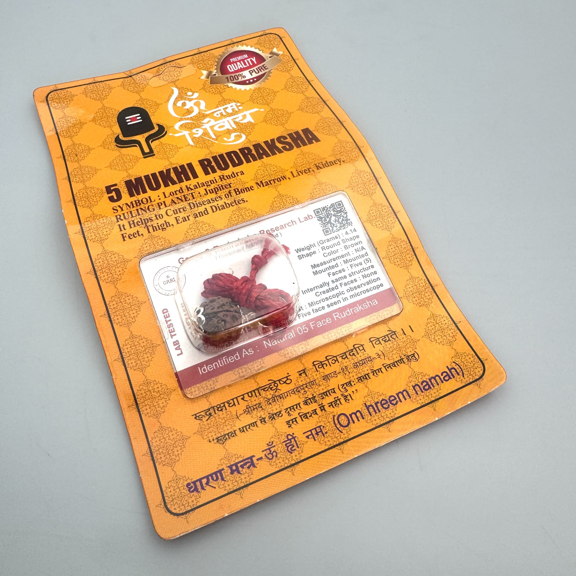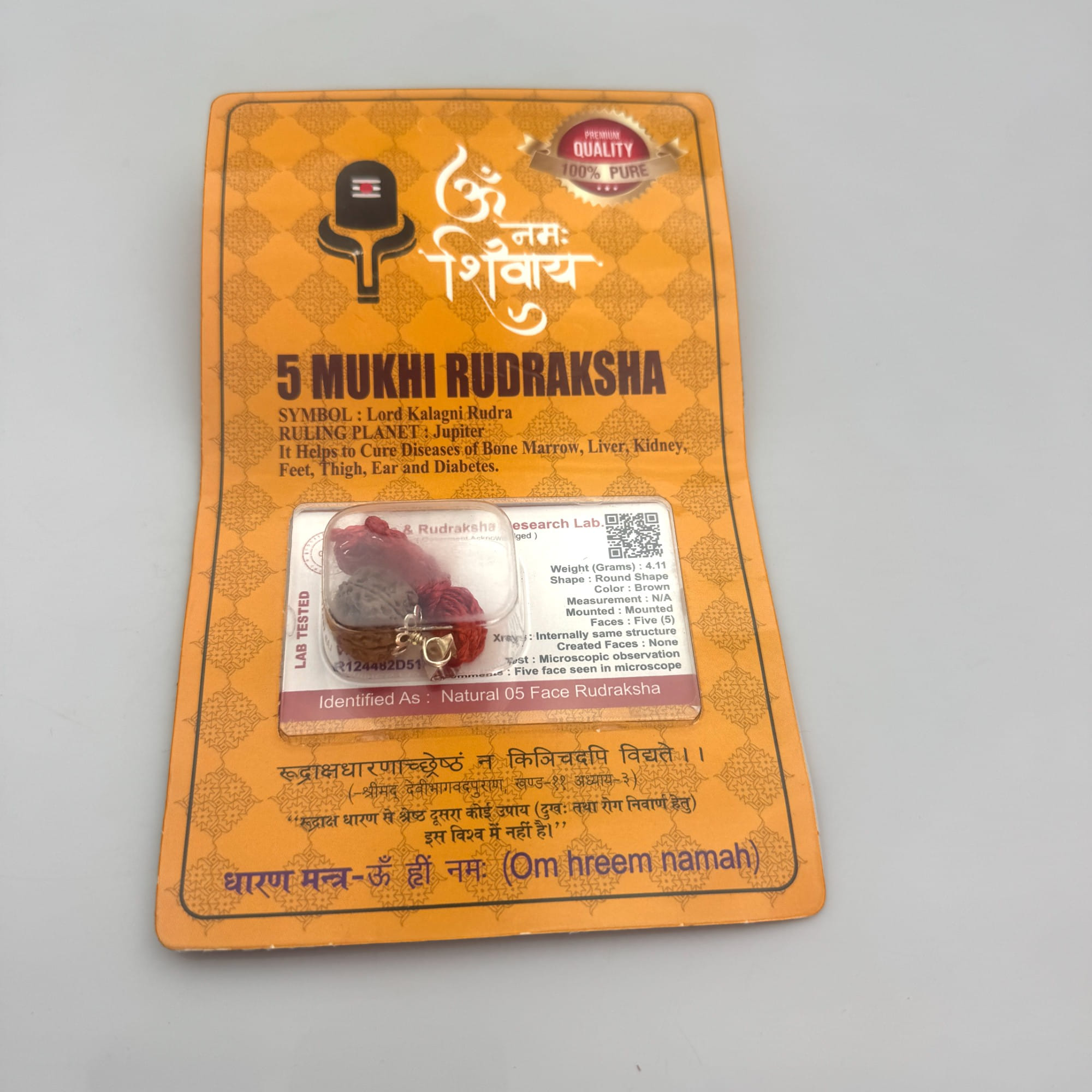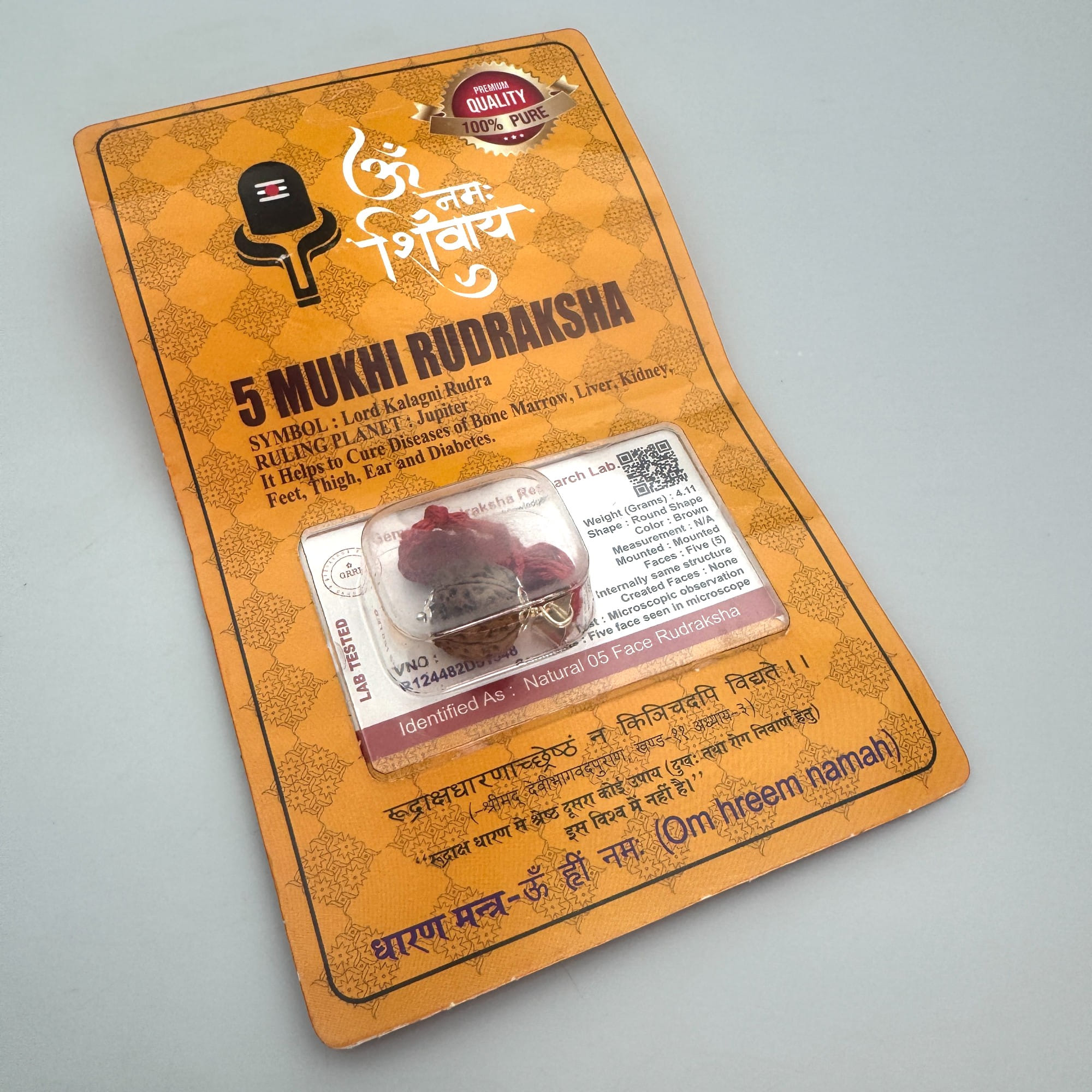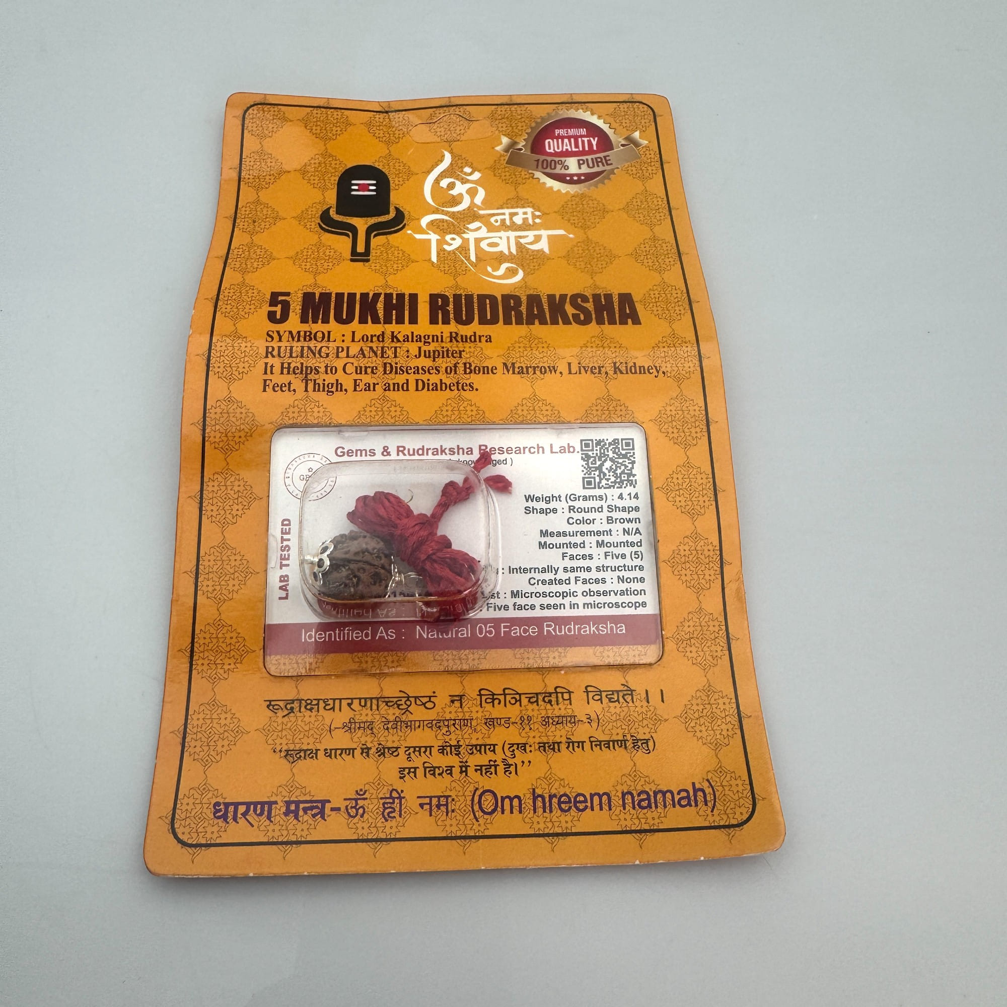 -Значение: 5-ликая Рудракша очищает разум, помогает справиться с тревогами и стрессом, развивает интуицию и поддерживает духовную практику.