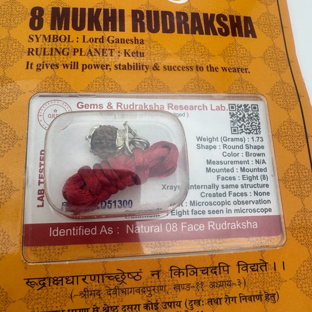 -Планета-покровитель: Раху — планета иллюзий и неожиданностей. 8-ликая Рудракша помогает смягчить её негативное влияние, устраняя страхи, сомнения и препятствия.