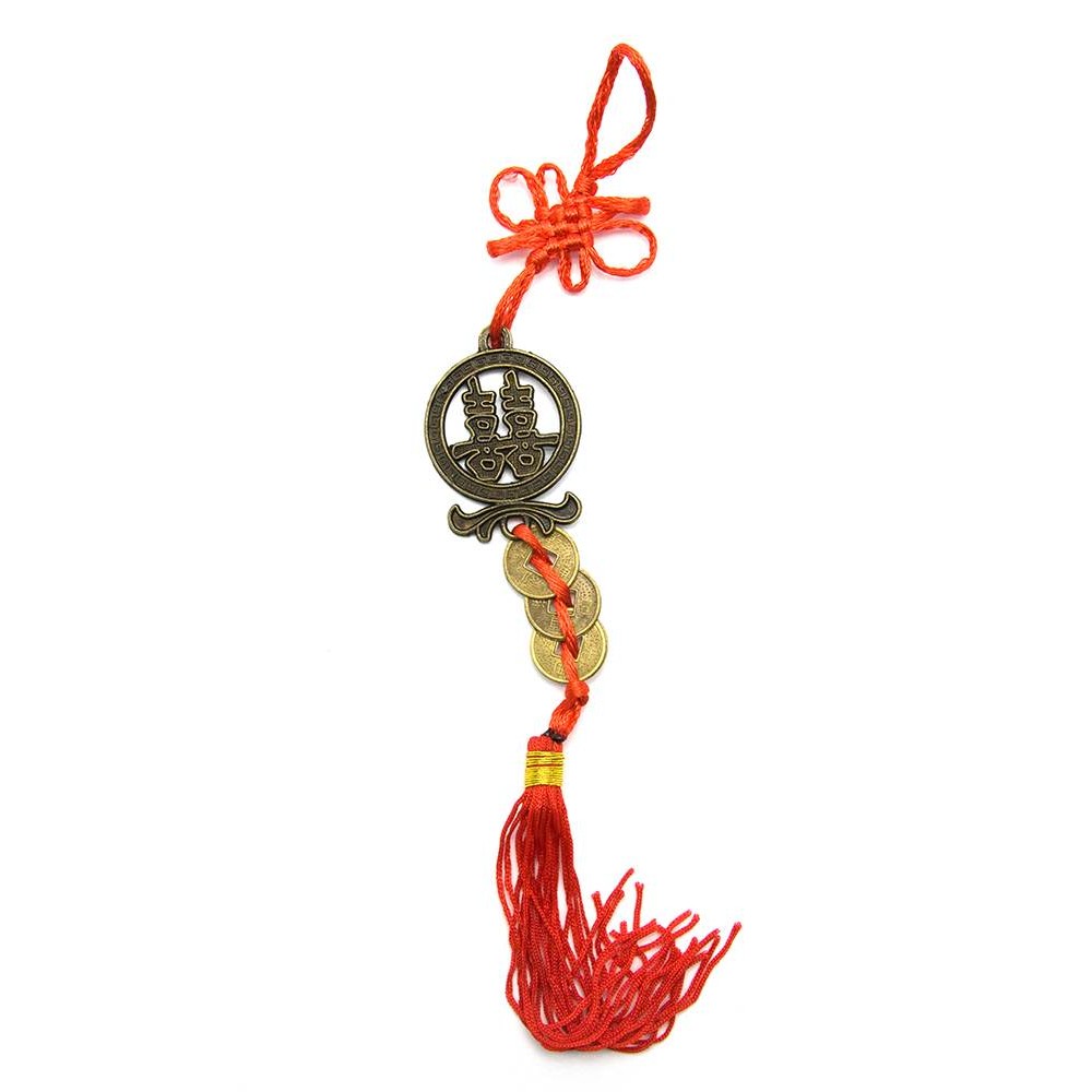 Подвеска 3 монтеты и иероглиф (пожелание богатства и любви)(19х3 см) код 23438