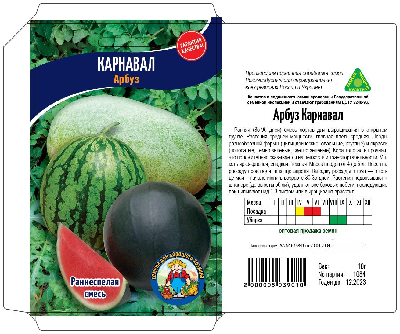 Ранняя (85-90 дней) смечь сортов для вырашивания в открытом грунте. Растения средней мощности, главная пледь средняя. Плоды разнообразной формы ( цилиндрические, овальные, круглые) и окраски ( полосатые, тёмно-зелёны, светло-зелёные ). Кора толстая и прочная, что положительно сказывается на лёжкости и транспортабельности. Мякоть ярко-красная, сладкая, нежная. Масса плодов от 4 до 6 кг.