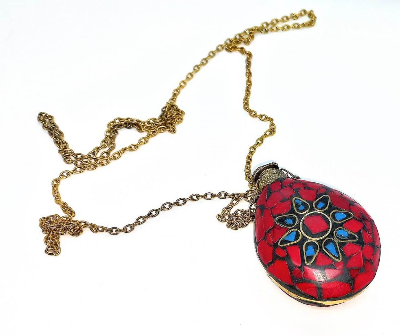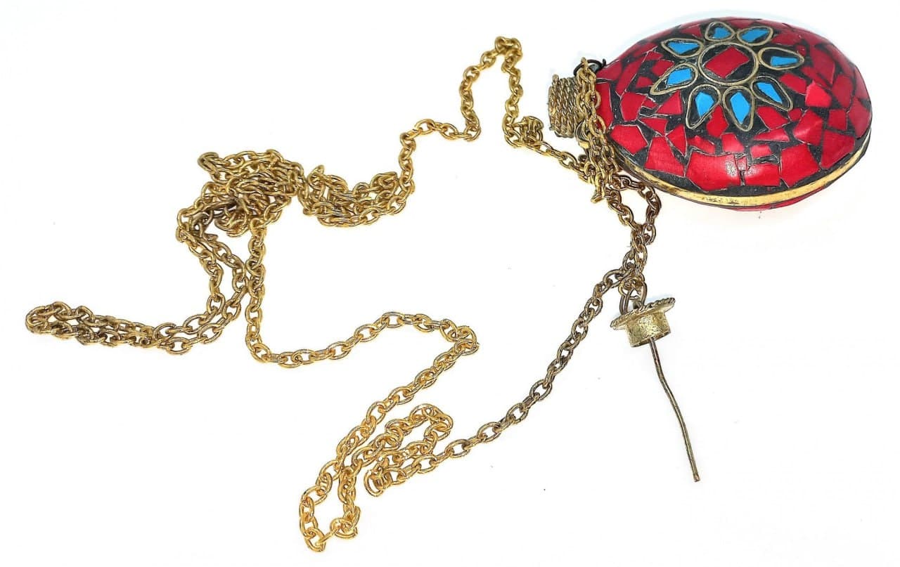 Аромакулон Солнце бронзовый инкрустирован бирюзой и кораллами (5,5х4,5х2 см)