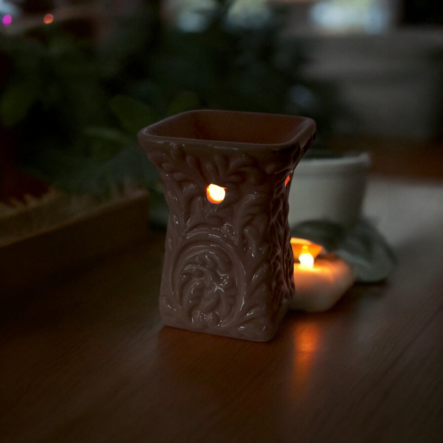 Керамическая аромалампа с утонченным растительным узором, выполненная в приятном пастельном тоне, станет прекрасным дополнением для вашего дома. Ее дизайн, напоминающий резьбу по камню, создает теплую и уютную атмосферу. Поместите аромалампу на удобное место, добавьте несколько капель вашего любимого эфирного масла и зажгите свечу, чтобы напомнить себе о важности расслабления и гармонии.