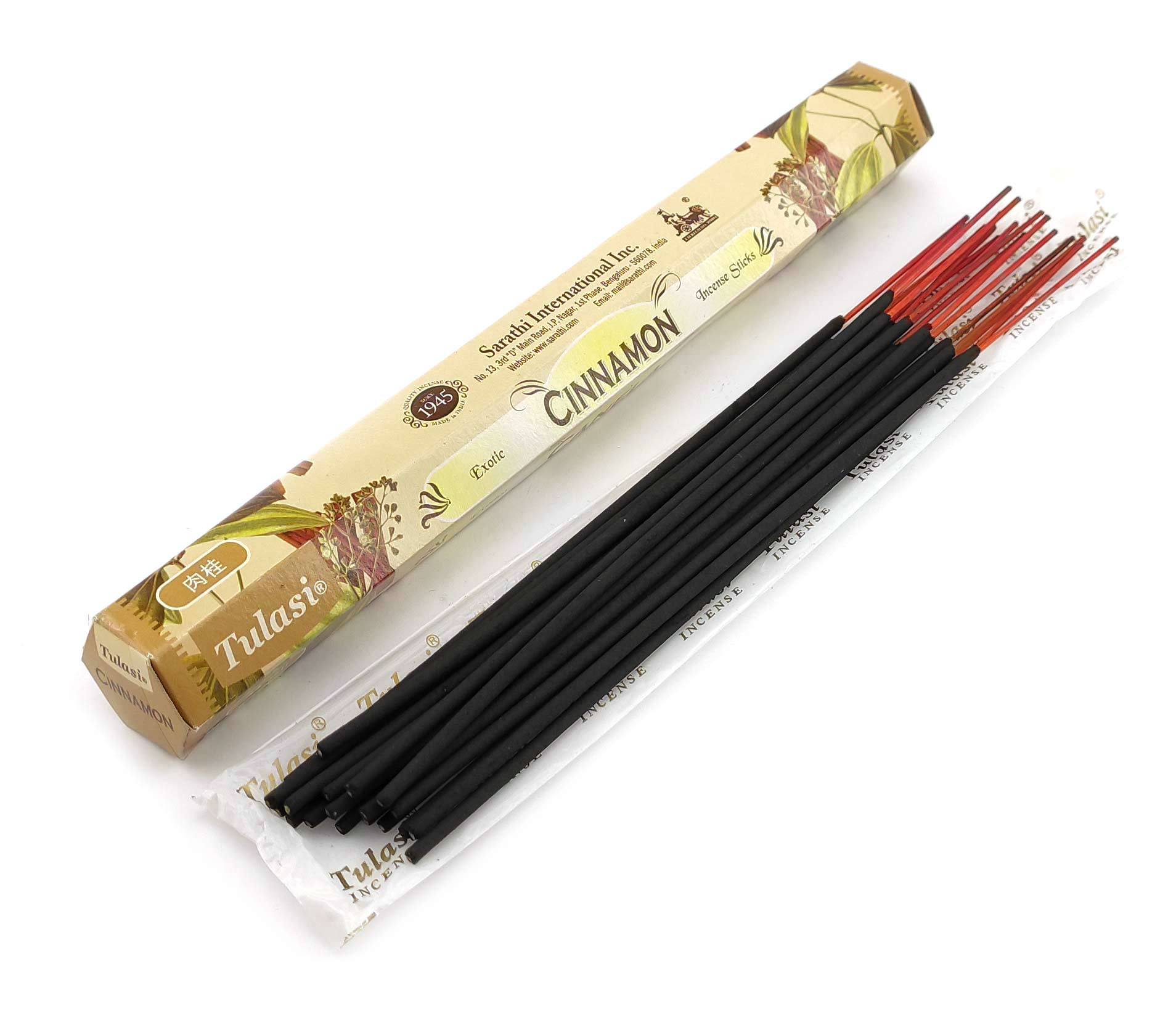Ароматические палочки Cinnamon (Корица) изготовителя Tulasi Индия. В одной пачке (шестиграннике) 20 аромапалочек.