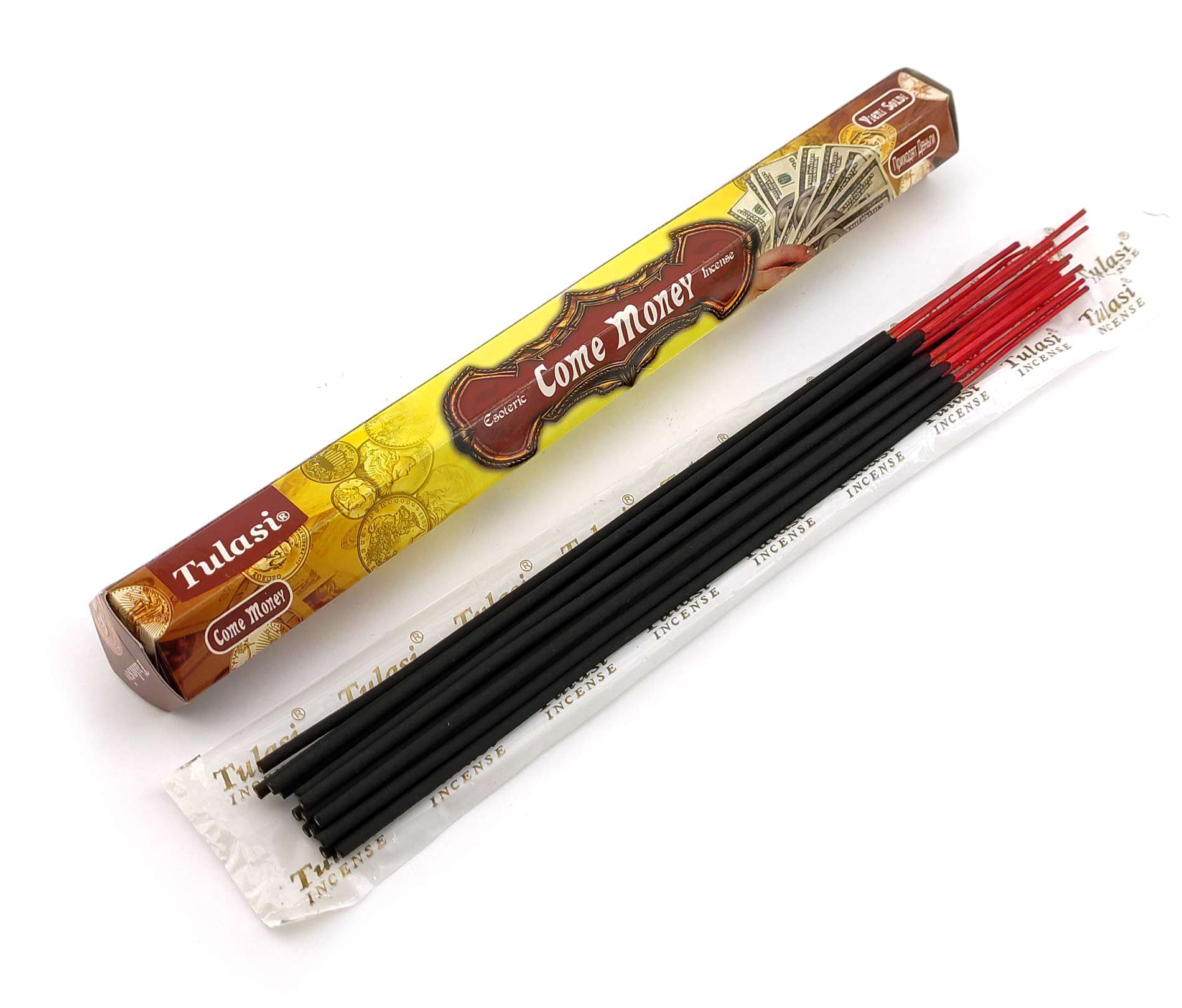 Ароматические палочки Come Money (Привлечение Денег) изготовителя Tulasi Индия. В одной пачке (шестиграннике) 20 аромапалочек.
