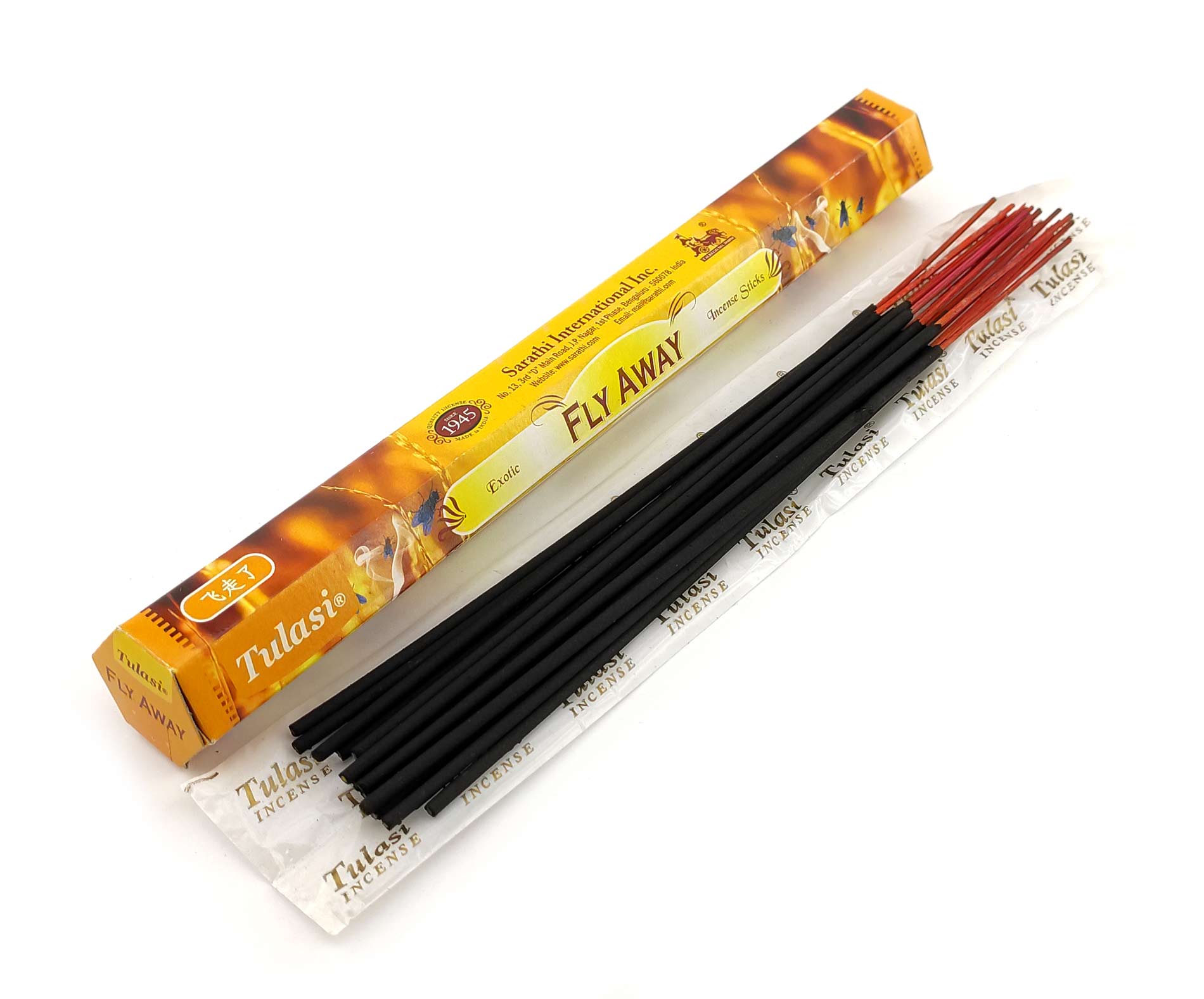 Ароматические палочки Fly Away (Полёт) изготовителя Tulasi Индия. В одной пачке (шестиграннике) 20 аромапалочек.