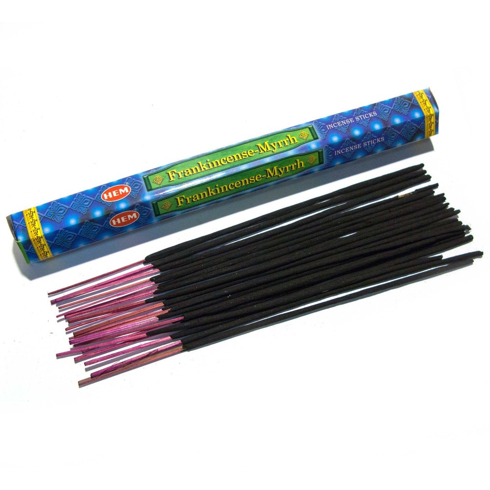 Натуральные ароматические палочки "Ладан и Мирра" одного из замых известных производителей Индии HEM corporation. В одной пачке (шестиграннике) 20 аромапалочек на бамбуковой основе. Цена за один шестигранник.