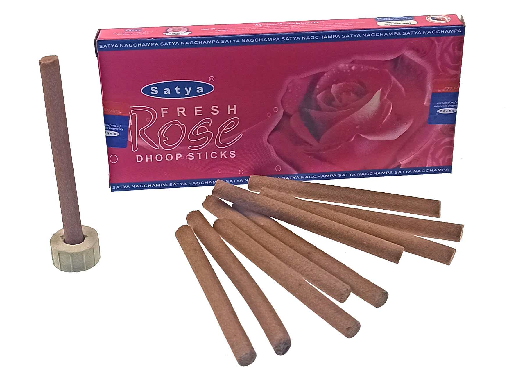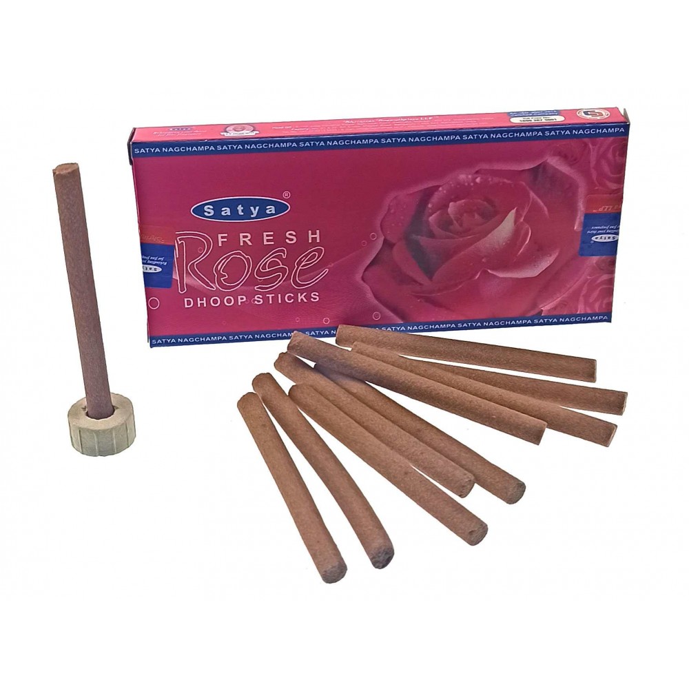 Fresh Rose (Свежая Роза) - это безосновное благовоние в форме палочек dhoop от компании Satya. Упаковка содержит 20 грамм благовоний. Оно создано на основе натуральных ароматических компонентов с нежным и свежим ароматом розы.