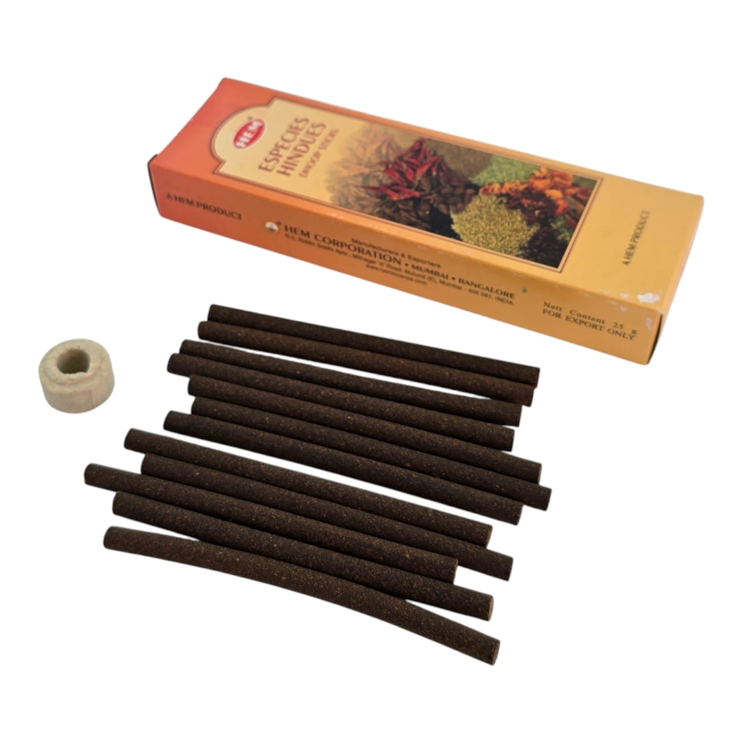 Безосновные палочки HEM Indian Spices - формат dhoop без бамбуковой основы, который даёт плотное ровное тление и насыщенный пряный аромат индийских специй. Подходят для дома, медитации, йоги, расслабления и быстрого устранения посторонних запахов. Производитель - HEM Corporation Pvt. Ltd. (Мумбаи–Бенгалуру) - известный индийский бренд благовоний с многолетней историей и собственными композициями на базе натуральных смол, эфирных масел и специй. В комплекте есть мини-подставка.