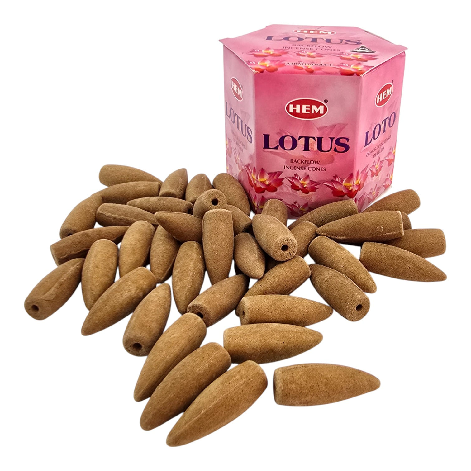 HEM Lotus - ароматические конусы Backflow с нежным цветочным ароматом лотоса от индийского производителя HEM. Со специальной подставкой Backflow дым красиво струится вниз, создавая эффект водопада. Подходят для ароматизации дома, расслабления, медитации и как готовый подарок.