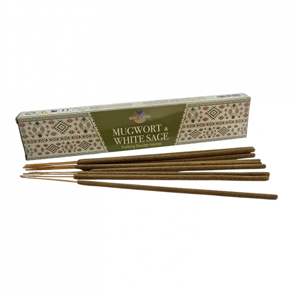 Ароматические палочки серии Sacred Elements от производителя Shabro International, Индия. Сочетание полыни Mugwort и белого шалфея White Sage даёт чистый травяной аромат для очищения пространства, медитации и спокойной атмосферы дома, в йога-студии или офисе. Палочка легко используется и долго тлеет, равномерно наполняя комнату ароматом.