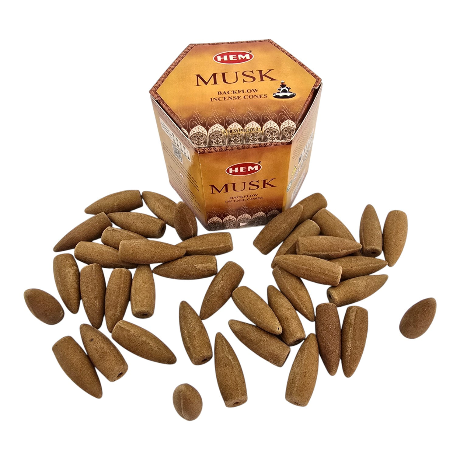HEM Musk - ароматические конусы Backflow с тёплым мускусным ароматом от индийского производителя HEM. Со специальной подставкой Backflow дым красиво струится вниз, создавая эффект водопада. Подходят для ароматизации дома, расслабления, медитации и в качестве готового подарка.
