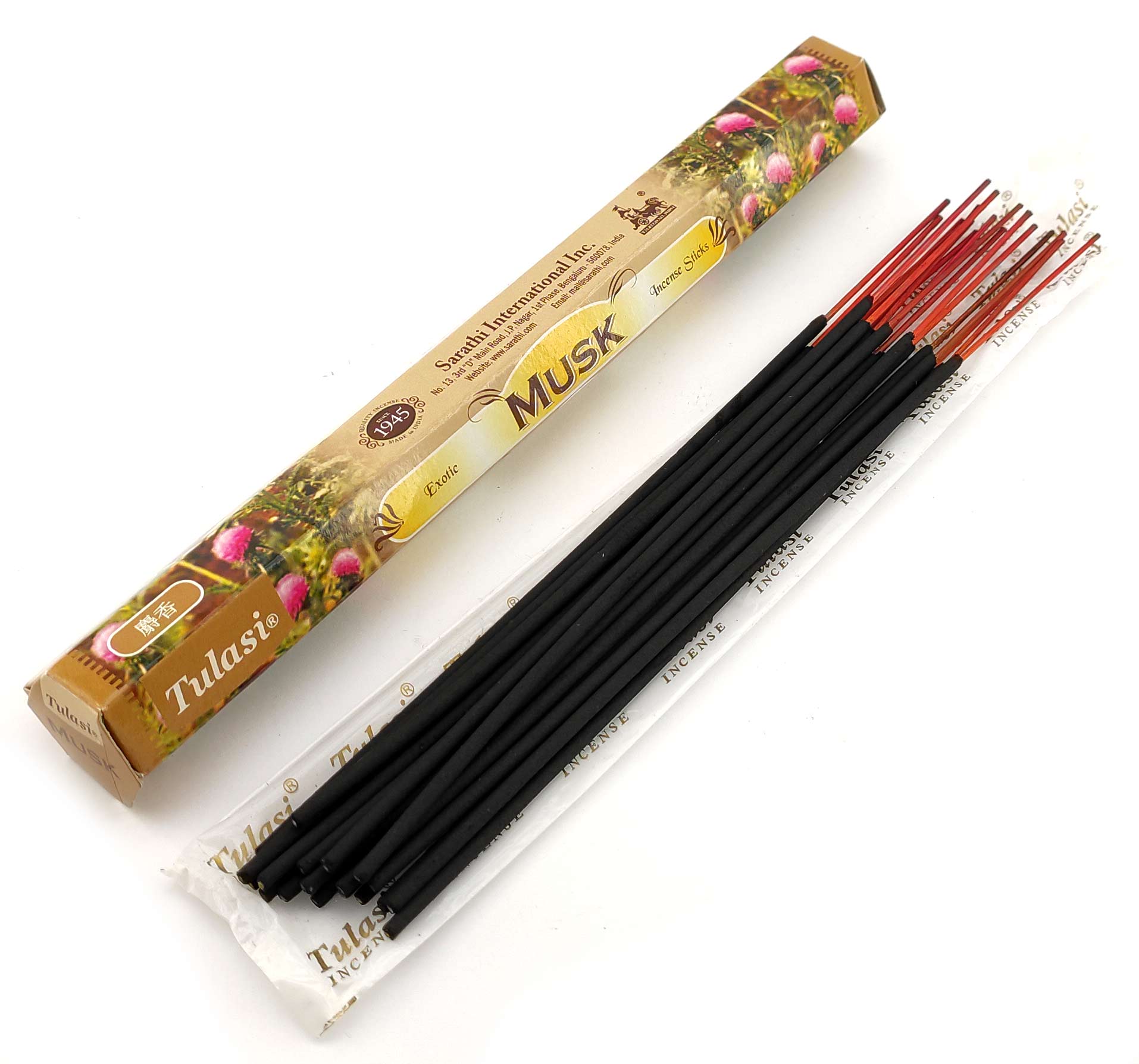 Ароматические палочки Musk (Муск) изготовителя Tulasi Индия. В одной пачке (шестиграннике) 20 аромапалочек.