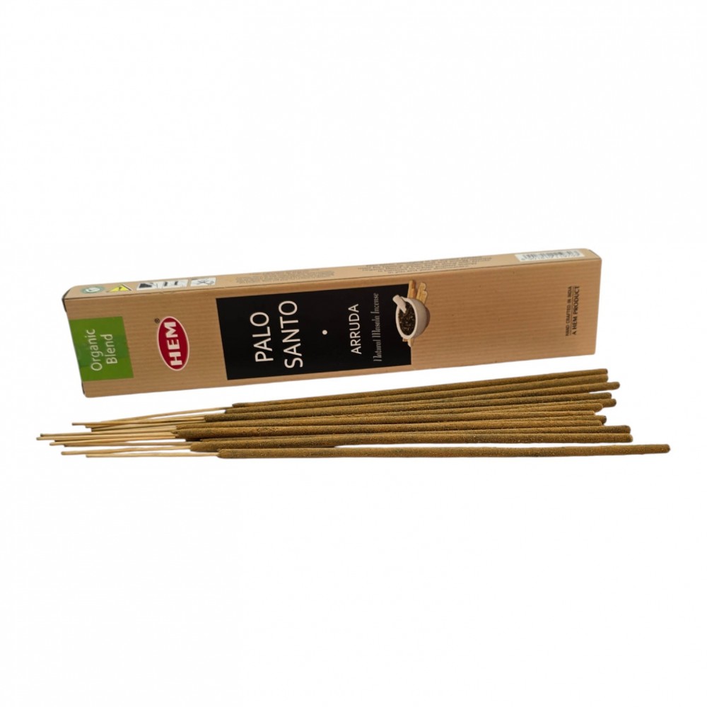 Ароматические палочки HEM Palo Santo Arruda производятся индийской компанией HEM Corporation Pvt. Ltd. по классической технологии масала из натуральных растительных порошков и смол на бамбуковой основе. Деревянные, тёплые ноты palo santo в сочетании с зелёно-травяным акцентом руты arruda создают атмосферу спокойствия, помогают сосредоточиться на медитации и мягко освежают пространство дома или в офисе.