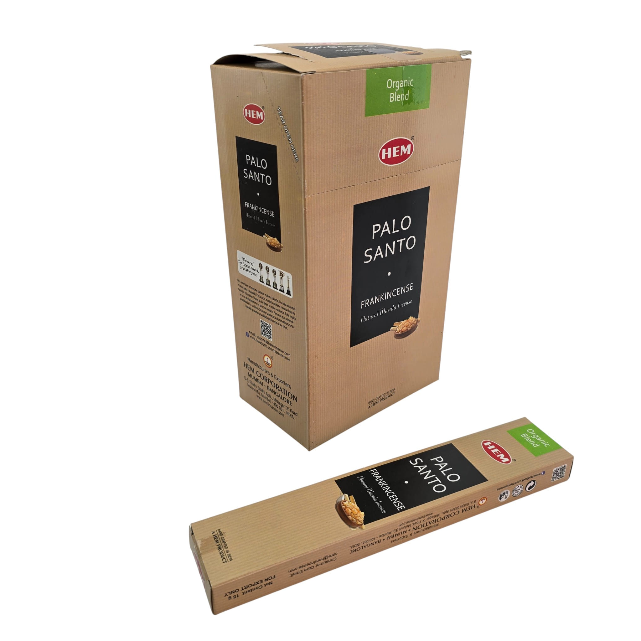 HEM Palo Santo Frankincense это индийские масала благовония ручной скрутки с сочетанием святого дерева палосанто и смолы ладана. Тёплый древесно-смолистый аромат очищает пространство, помогает расслабиться и сосредоточиться во время медитации, наполняет дом уютом. Производитель HEM Corporation Pvt. Ltd. Мумбаи Бангалор Индия известный экспортёр благовоний, использует традиционные рецептуры из натуральных порошков и эфирных масел.