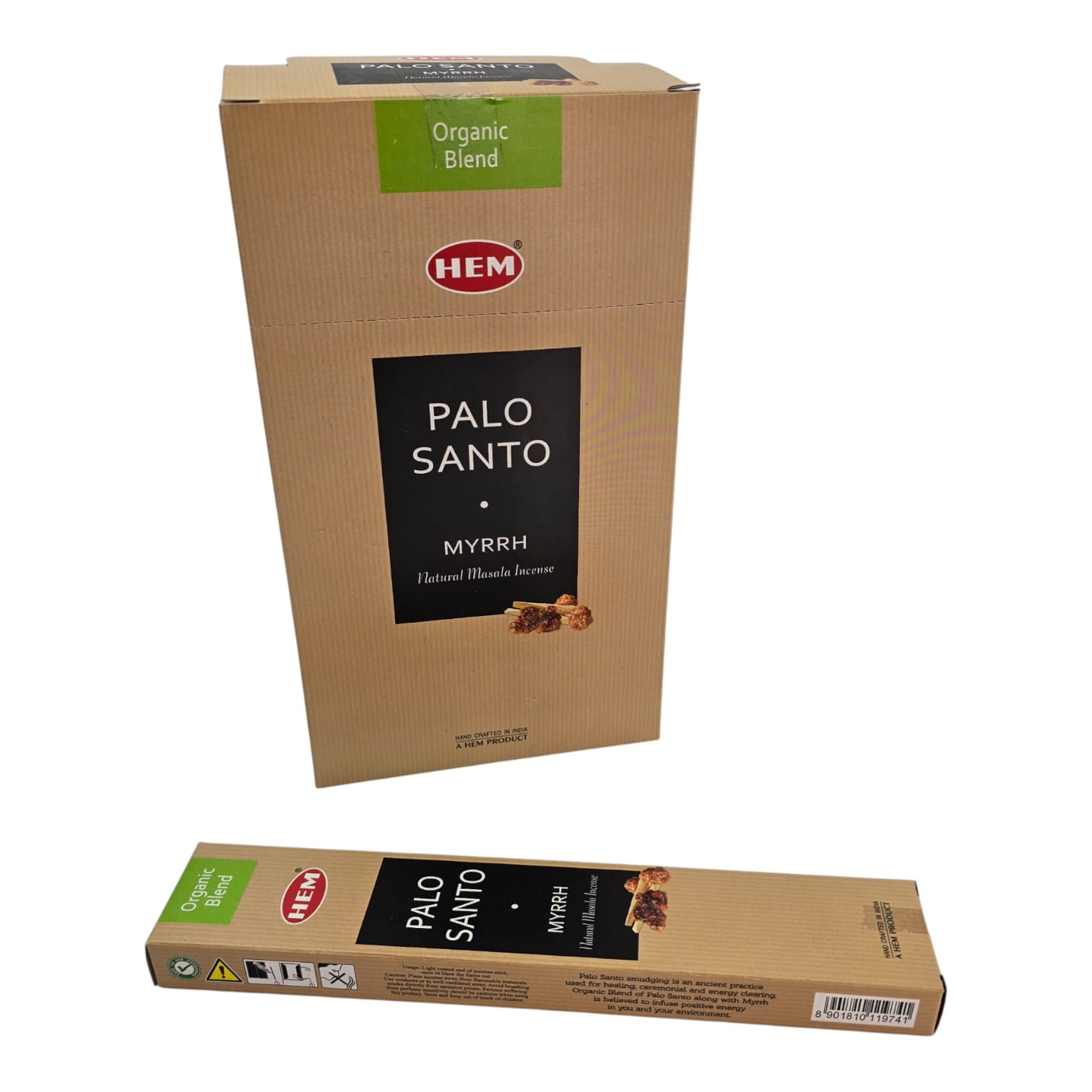 Благовония индийского бренда HEM Corporation Pvt. Ltd. (Мумбаи, Бангалор) из серии Organic Blend. Ручная скрутка и натуральная масала-основа соединяют священное дерево пало санто с бальзамической смолой мирры. Теплый древесно-смолистый аромат очищает пространство, помогает расслабиться, настроиться на медитацию и создает уютную атмосферу дома или в офисе.