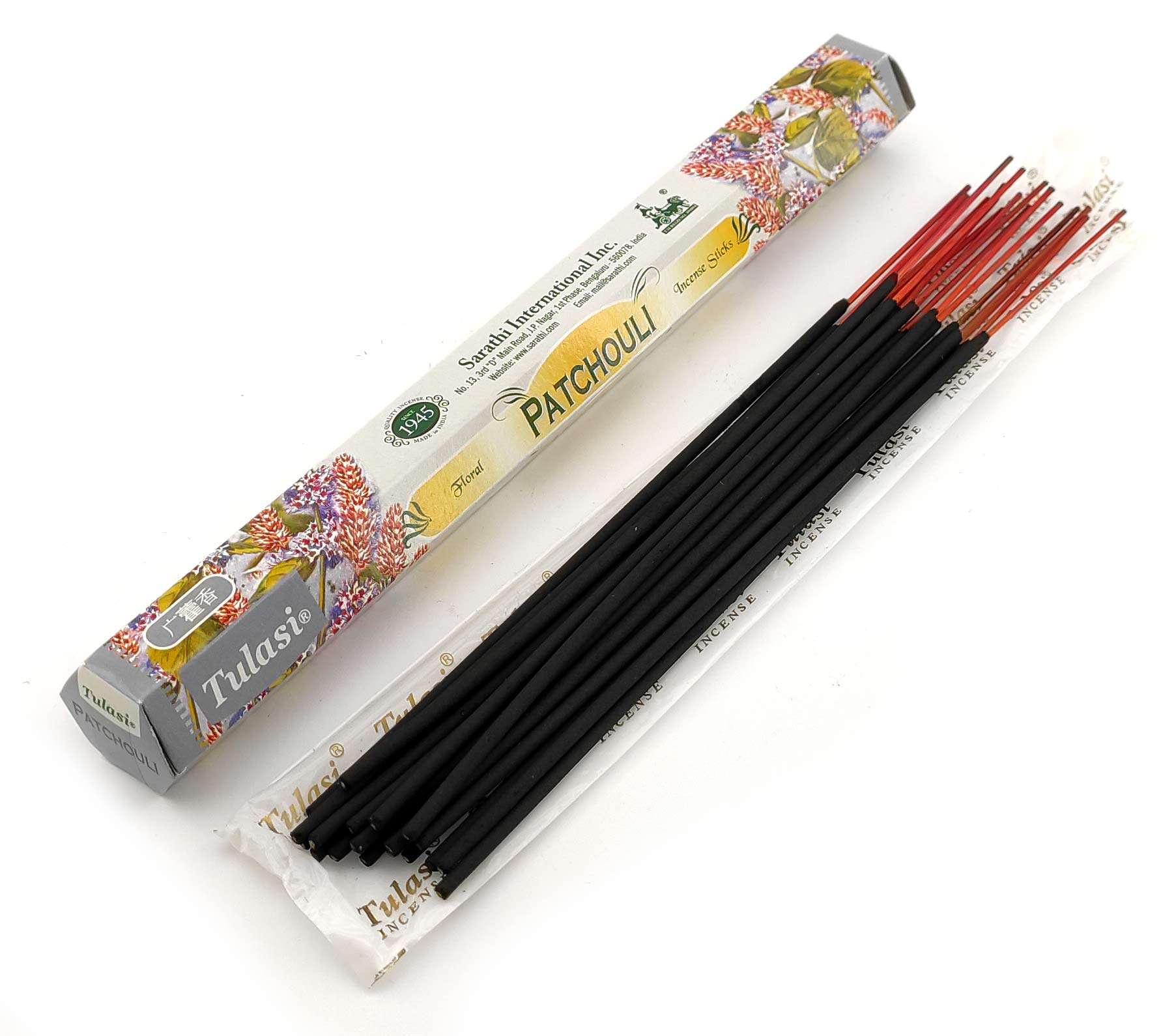 Ароматические палочки Patchouli (Пачули) изготовителя Tulasi Индия. В одной пачке (шестиграннике) 20 аромапалочек.