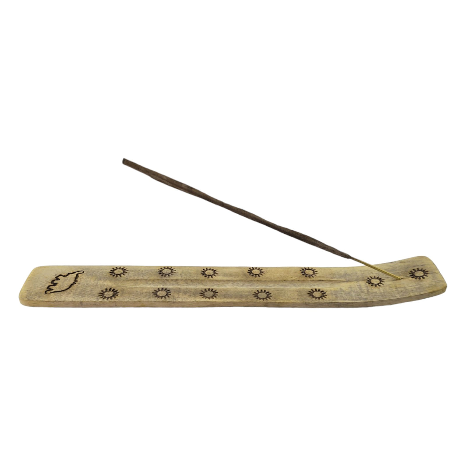Изготовленная из натурального светло-бежевого дерева, эта подставка не только функциональна, но и украшение для вашего пространства. Украшенная изображением солнца и прекрасного слона, она приносит в дом атмосферу тепла и уюта. Незаменимый аксессуар для ароматических палочек, эта подставка обеспечит вашему пространству приятный аромат и визуальное очарование. Добавьте в ваш интерьер нотку экзотики и гармонии с нашей уникальной подставкой "Слон"."