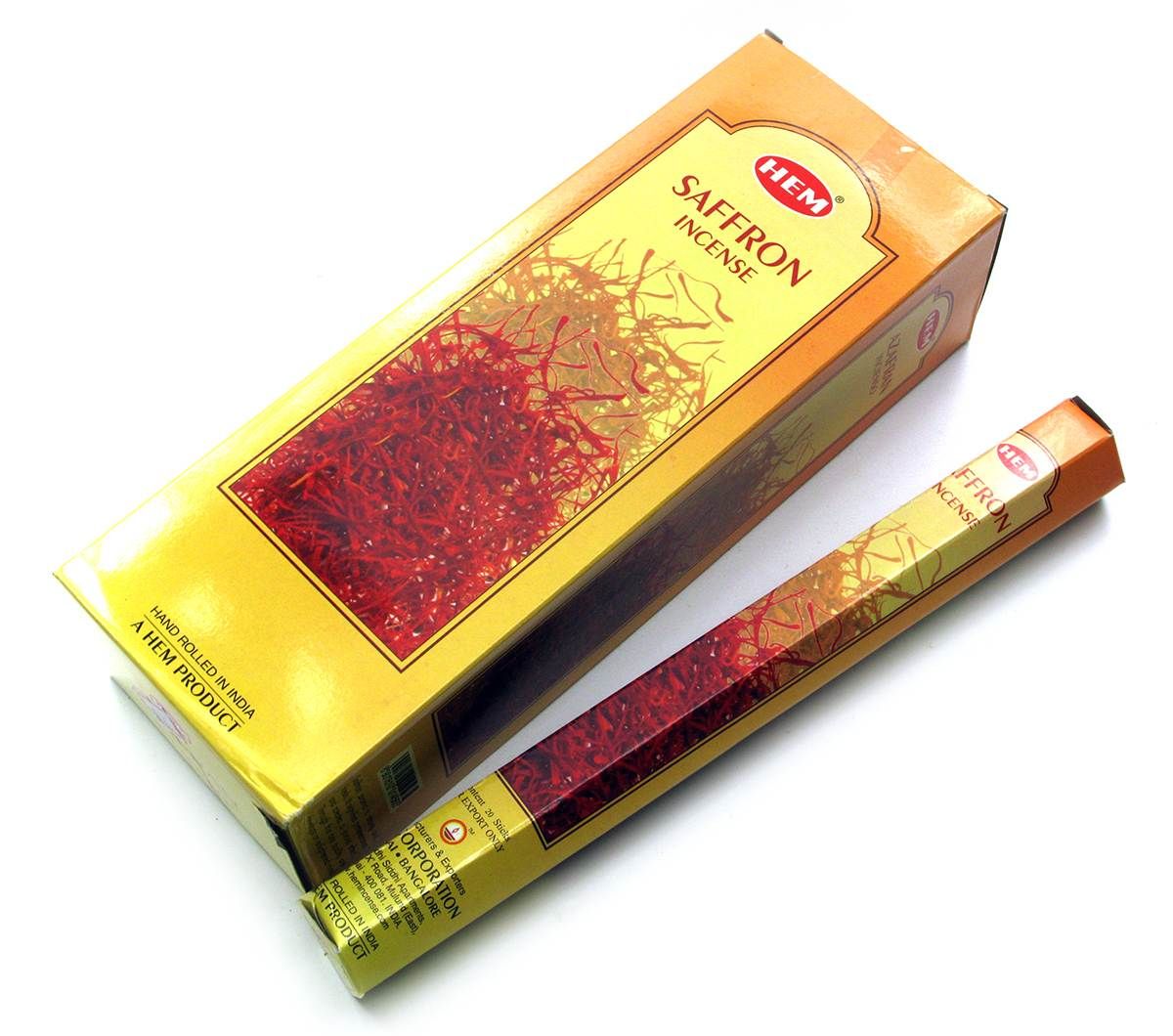 Натуральные ароматические палочки "Шафран" одного из замых известных производителей Индии HEM corporation. В одной пачке (шестиграннике) 20 аромапалочек на бамбуковой основе. Цена за один шестигранник.