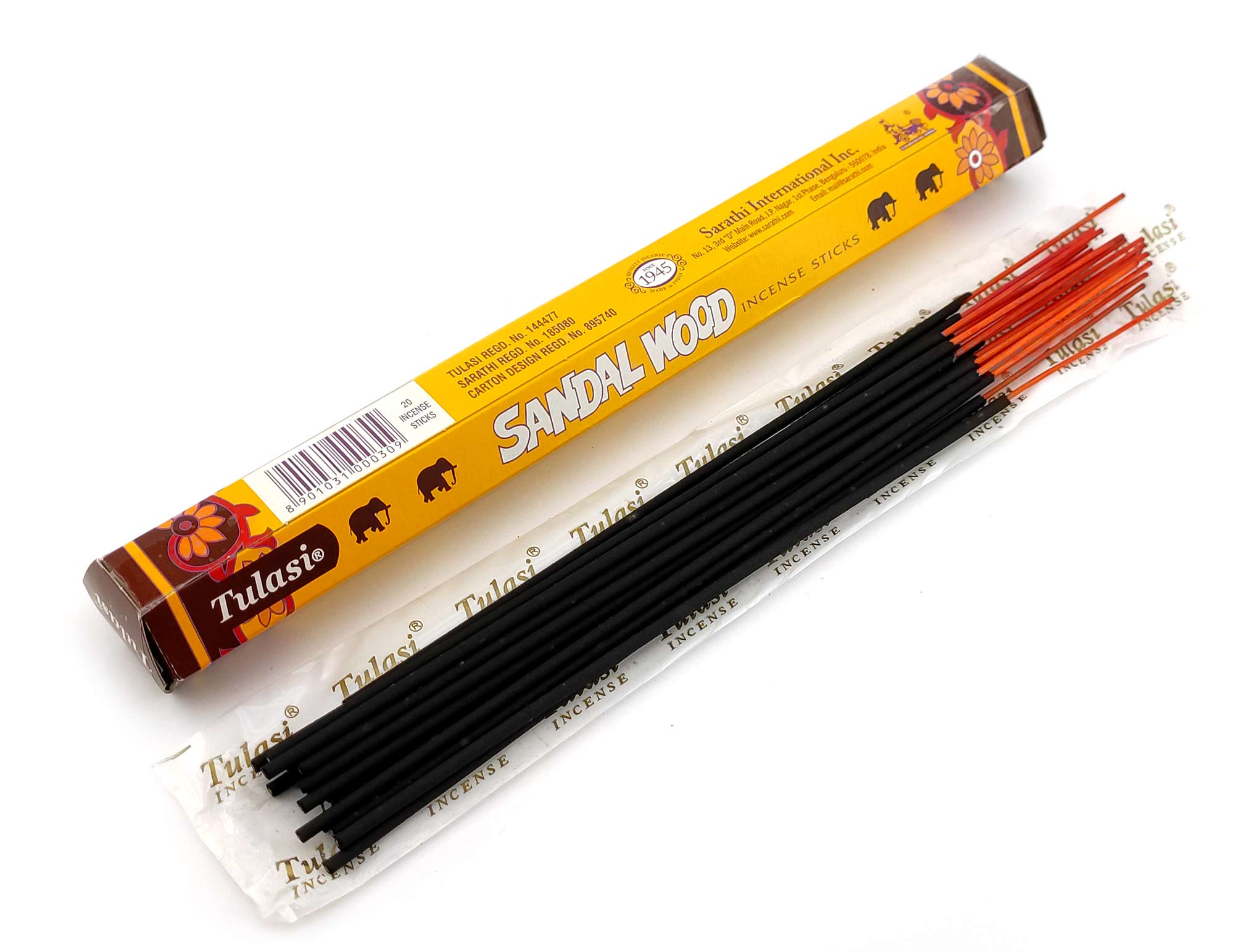 Ароматические палочки Сандал "Sandalwood" производителя Tulasi Индия. В одной пачке (шестиграннике) 20 аромапалочек.