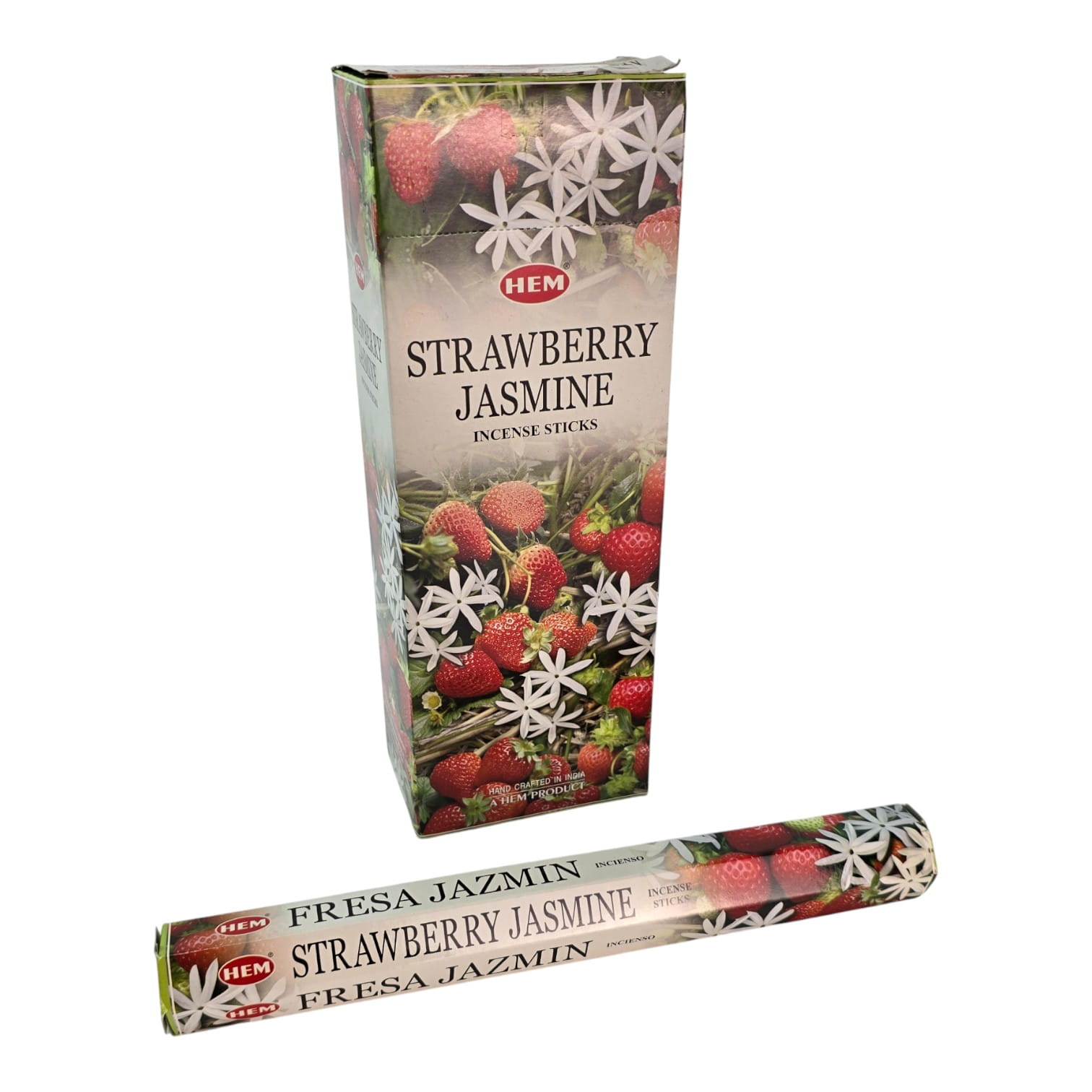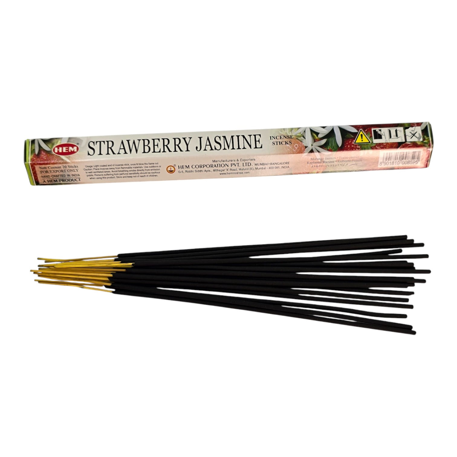 Классические индийские благовония в шестигранной упаковке по 20 палочек. Аромат Strawberry Jasmine сочетает сладость спелой клубники и цветочный жасмин - для отдыха, медитации, создания уюта и нейтрализации бытовых запахов.