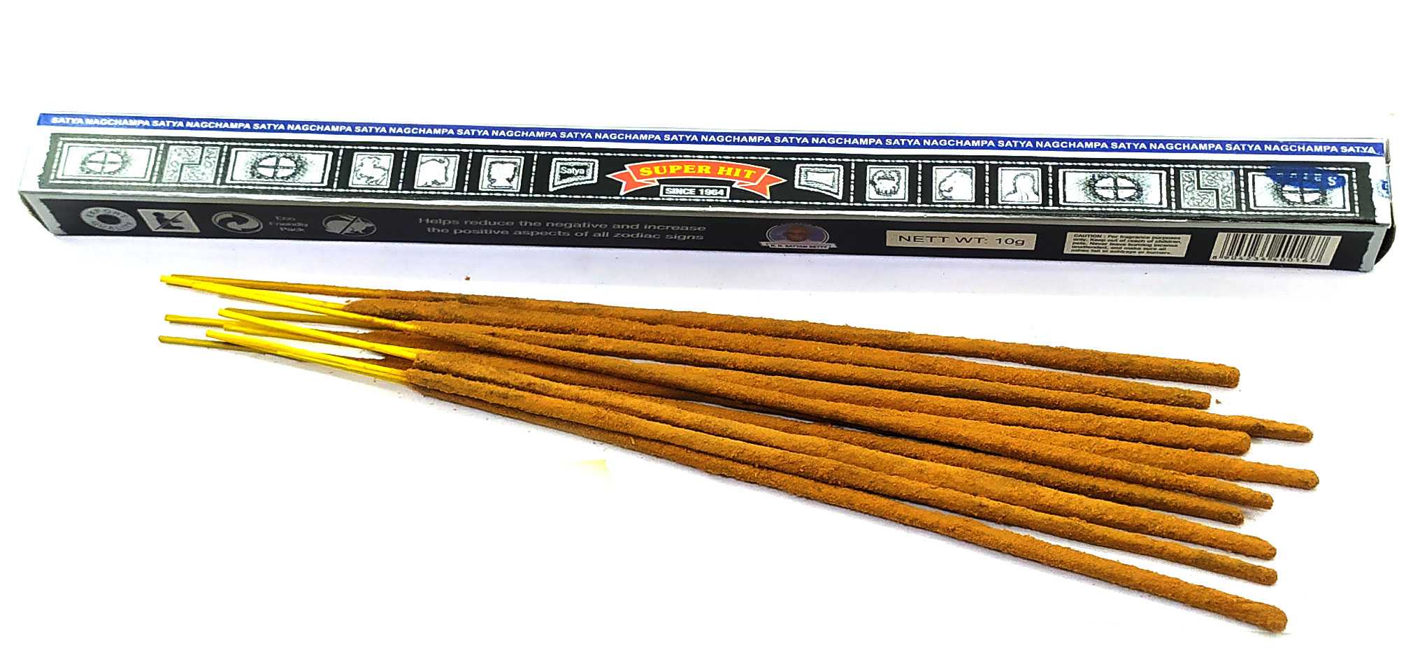 Super Hit (Супер Хит) (10 г)(Satya) является популярным пыльцовым благовонием, произведенным индийской компанией Shrinivas Sugandhalaya. Оно изготавливается из смеси натуральных ингредиентов, включая смолы, ароматические травы, специи и масла. Super Hit известен своим насыщенным и глубоким ароматом, который создает уютную и расслабляющую атмосферу. Он подходит для использования в доме, офисе, медитационной комнате или любом другом месте, где вы хотели бы создать атмосферу благополучия и спокойствия.