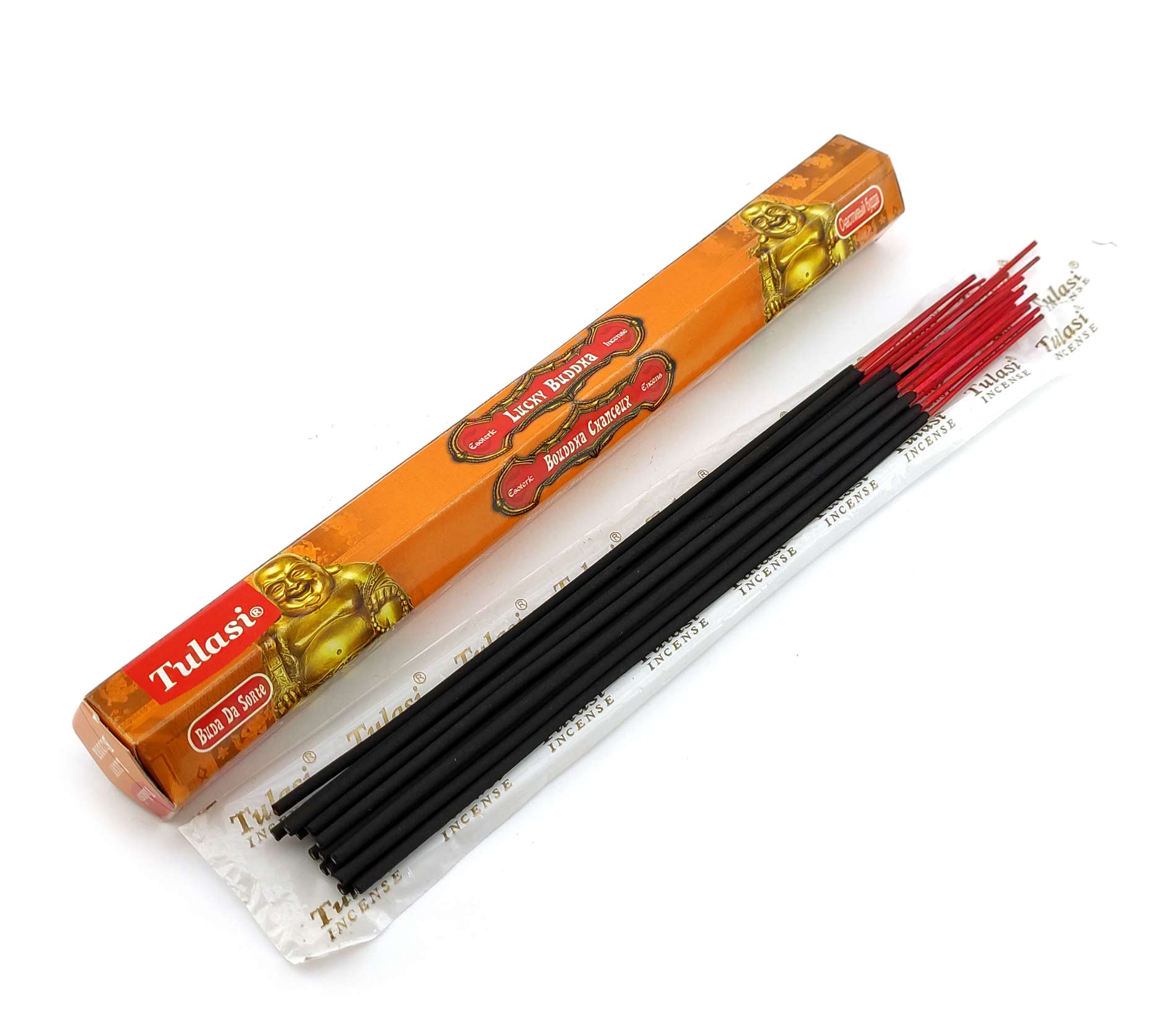 Ароматические палочки Lucky Buddha (Счастливый Будда) изготовителя Tulasi Индия. В одной пачке (шестиграннике) 20 аромапалочек.