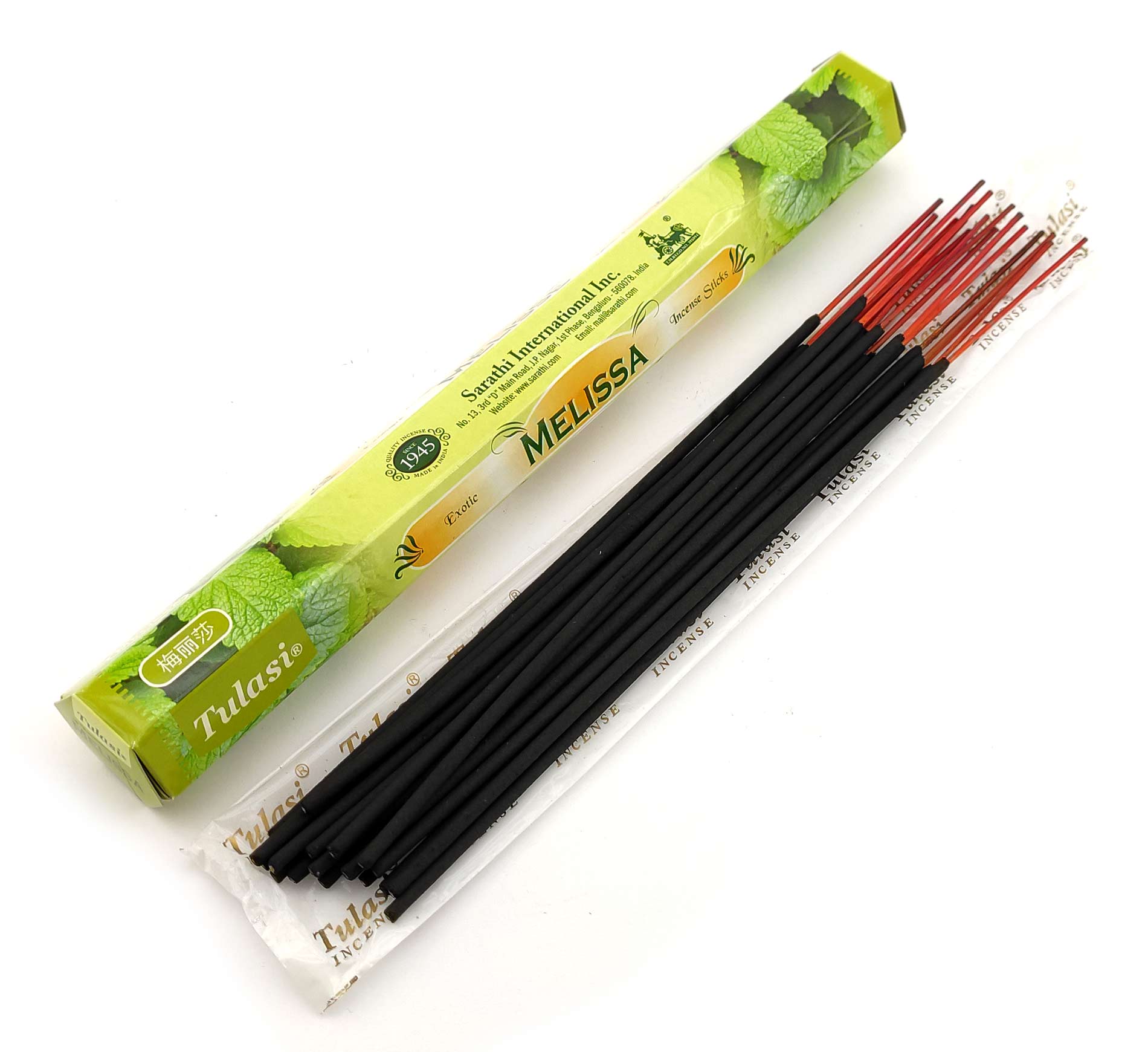 Ароматические палочки Melissa (Мелисса) изготовителя Tulasi Индия. В одной пачке (шестиграннике) 20 аромапалочек.
