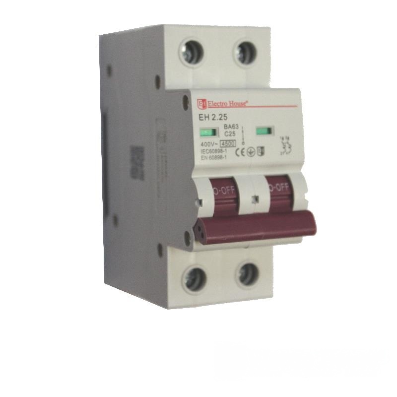 Автоматический выключатель 2 полюса 25 A EH-2.25 модульный с двумя полюсами - это сочетание высокого качества, отменной работы и долгосрочного термина службы. Выполняет роль предохранителя от всевозможных опасных ситуаций. Принцип действия заключается в моментальном автоматизированном выключении электрического питания в сети при перегрузках, коротких замыканиях или же при контакте человека с неизолированным проводом. Выполнен в компактном размере из качественного прочного пластика белого цвета. Допустимые нормы напряжения составляют от 230 до 400 В и силе номинального тока 25 А. При монтаже не потребует сложных и трудоемких действий. Является незаменимым по своим возможностям и рекомендует для установки в каждом жилище.