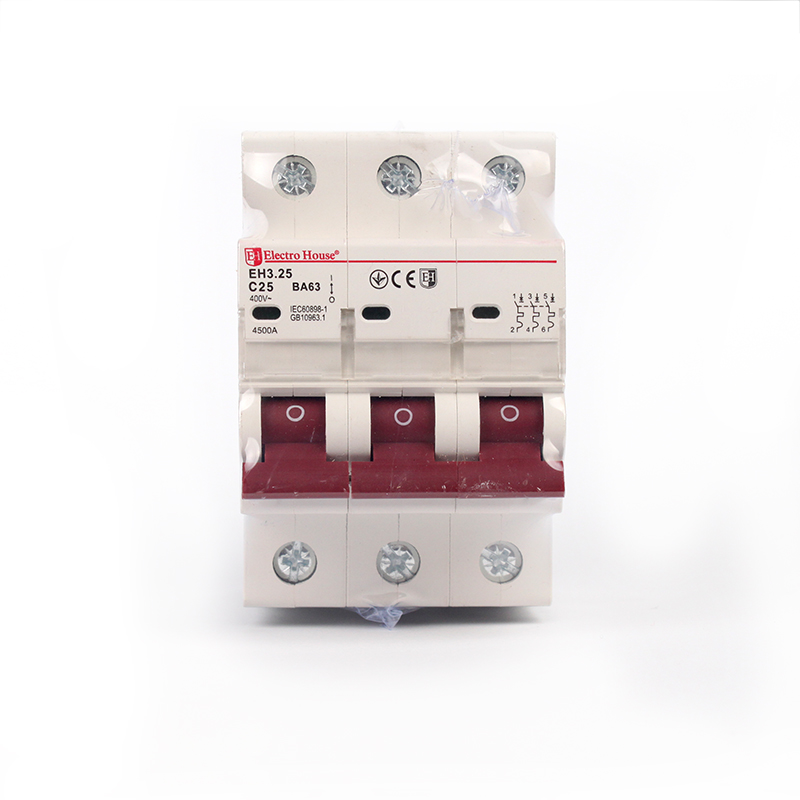 Автоматический выключатель 3 полюса 25 A EH-3.25 - выполняет моментальный разрыв цепи питания при ситуациях короткого замыкания, перенапряжения общей работоспособности электросети, контакте человека с неизолированным проводом, пробое или же поврежденной изоляции проводника. Принцип работы заключается в мгновенном выключении всего электропитания при возникновении всевозможных сбоев. Выполнен в компактном размере из качественного прочного пластика белого цвета. Данный прибор необходим в каждом жилище, так как обеспечивается максимальную пожарную безопасность и имеет возможность исключить необратимые последствия. Допустимые показатели напряжения в процессе эксплуатации составляет от 230 до 400 В. Разработан в соответствии всем европейским стандартам и имеет сертификацию качества в Украине.