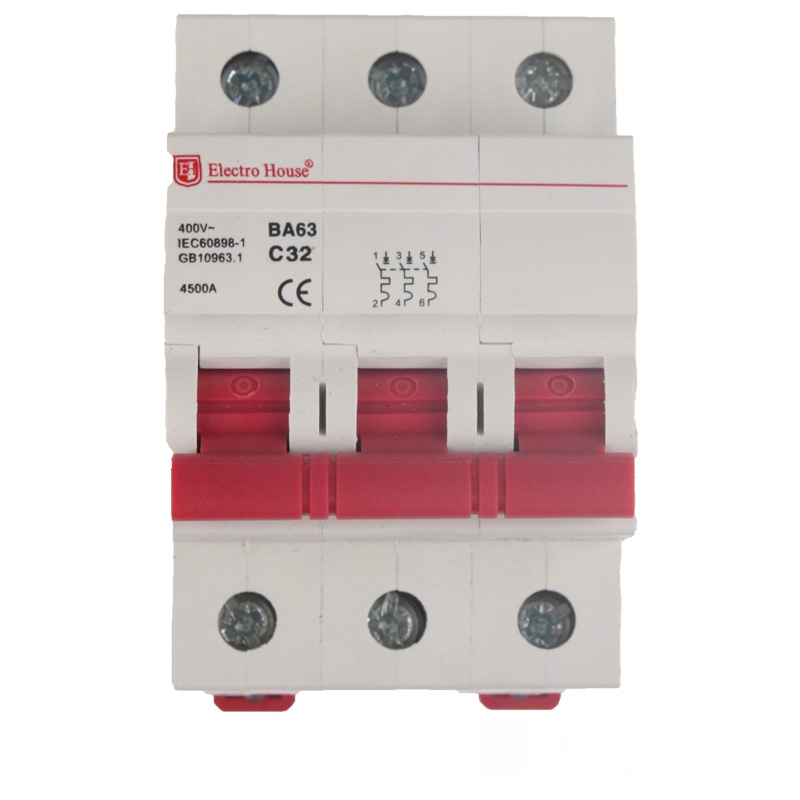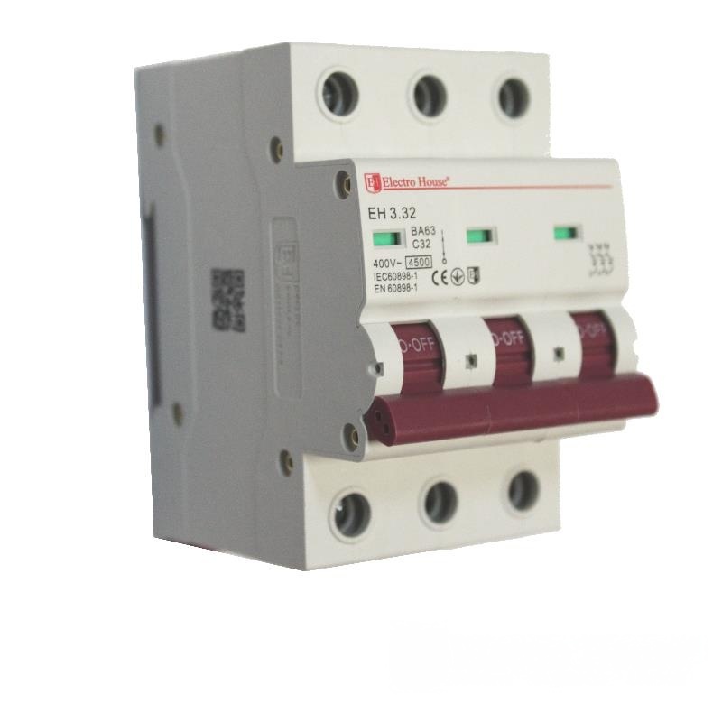 Автоматический выключатель 3 полюса 32 A EH-3.32 модульный от украинской компании «ElectroHouse» - надежная защита от поражения током, в случае неисправной изоляции проводов, если оборудование не корректно работает. Помогает при нестабильной работы сети в таких ситуациях как перенапряжение, короткое замыкание, пробои. Принцип действия заключается в аварийном автоматизированном отключении всего электрического питания. Материалом изготовления является качественный и очень прочный пластик белого цвета. Допустимое напряжение при эксплуатации от 230 до 400 В и сила номинального тока 32 А. Подходит для использования как в жилых, так и промышленных помещениях. Обладает отменной функциональностью в течении долгих лет.