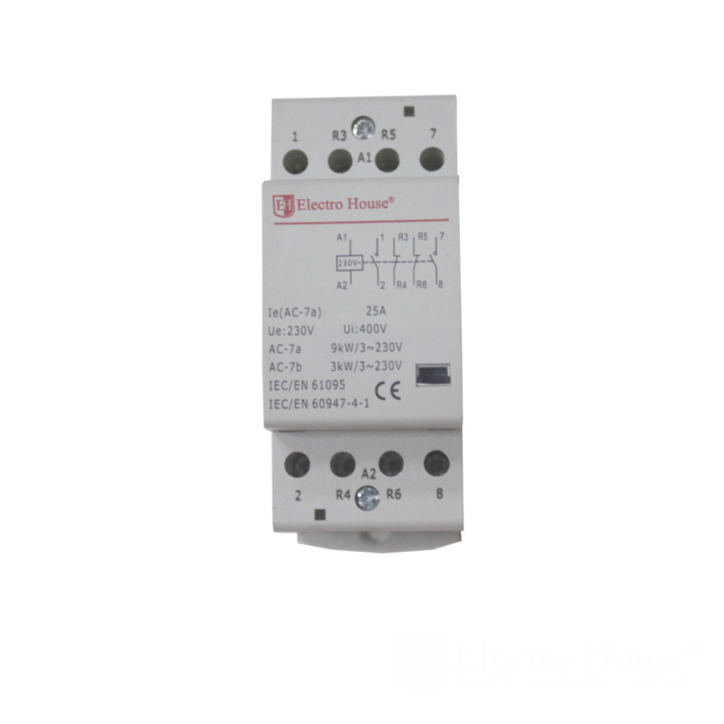 Выбирайте Контактор модульный 4P 25A 220-230 В, 2 нормально открытых + 2 нормально закрытых контакты от ElectroHouse для эффективного управления вашей электросетью.
