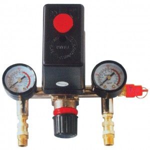 Прессостат поршневого компрессора (блок автоматики компрессора) предназначен для включения и выключения электрического двигателя компрессора при достижении заданного уровня давления. ТМ INTERTOOL поставляет на рынок как отдельно прессостат (модель PT-9093), так и прессостат в сборе (модель PT-9094), включающий прессостат, 2 манометра, редуктор, 2 выхода и предохранительный клапан.